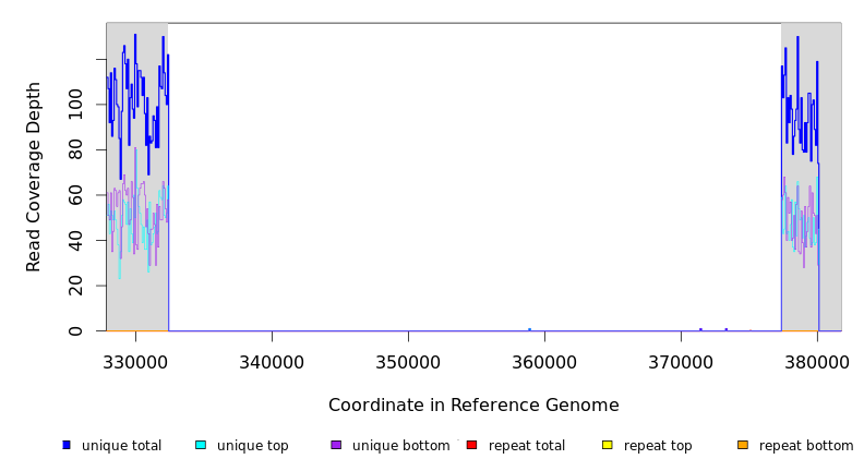 | seq id | start | end | size | ←reads | reads→ | gene | description | |||