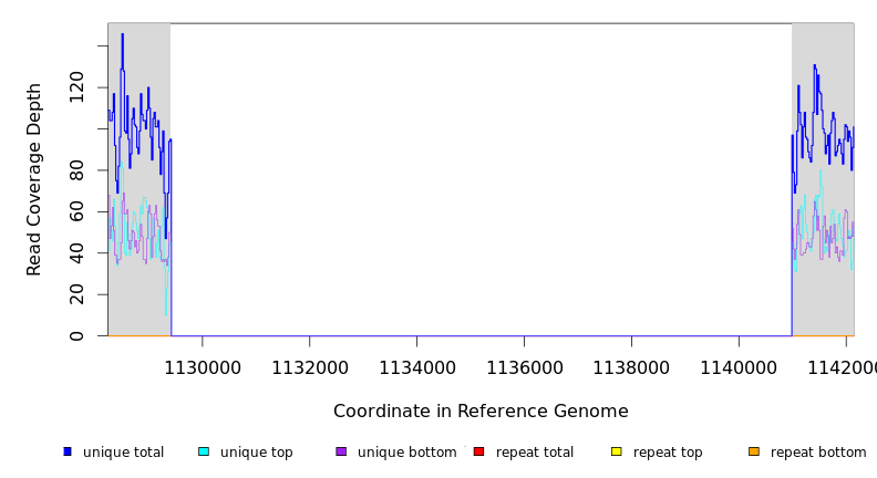 | seq id | start | end | size | ←reads | reads→ | gene | description | |||
