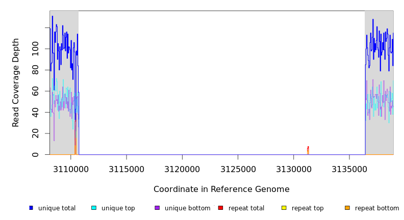 | seq id | start | end | size | ←reads | reads→ | gene | description | |||