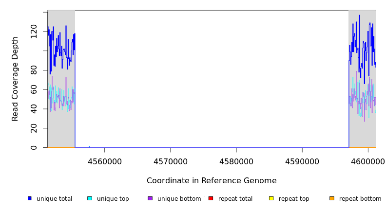 | seq id | start | end | size | ←reads | reads→ | gene | description | |||
