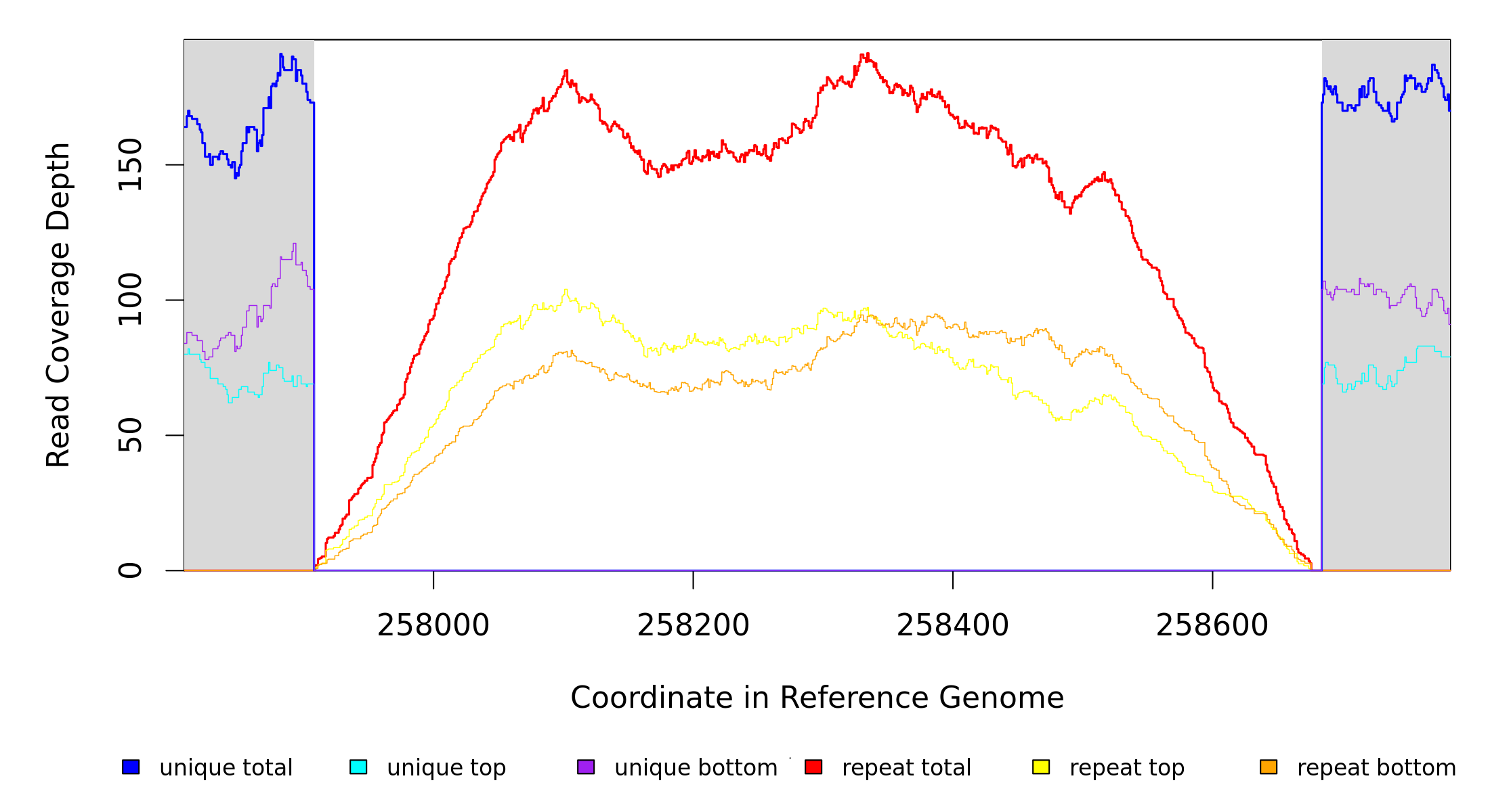 | seq id | start | end | size | ←reads | reads→ | gene | description | |||