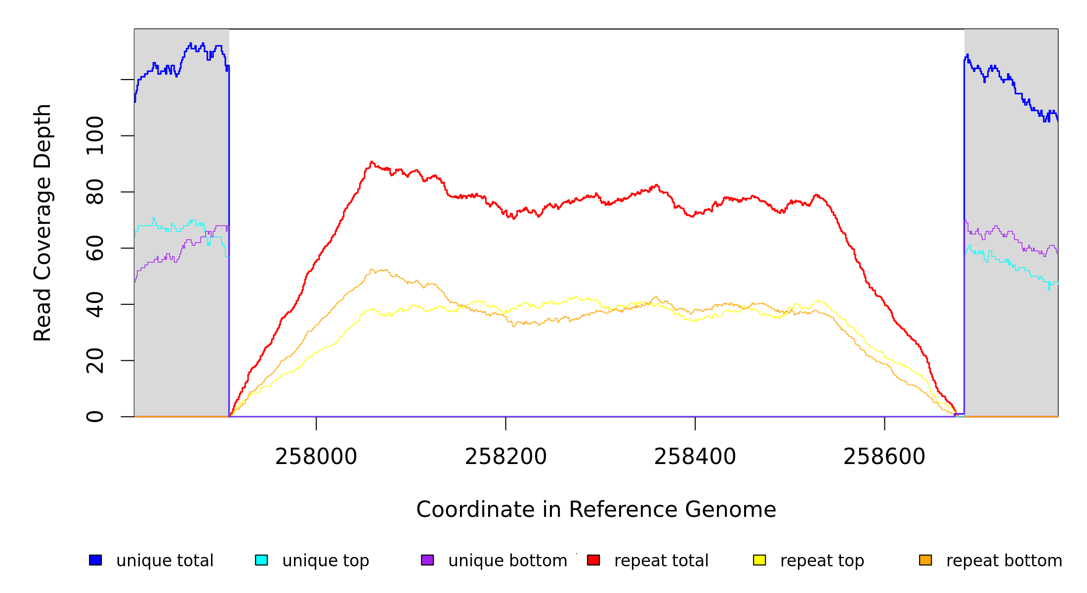 | seq id | start | end | size | ←reads | reads→ | gene | description | |||