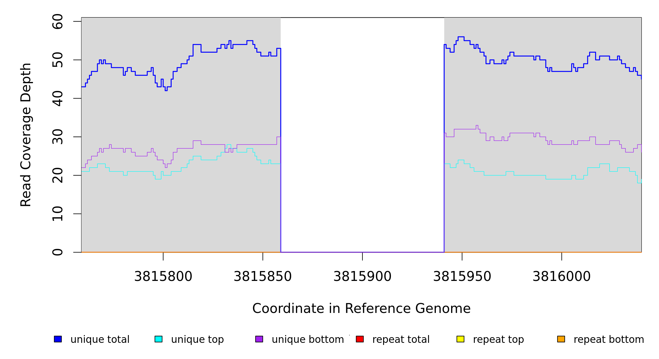 | seq id | start | end | size | ←reads | reads→ | gene | description | |||