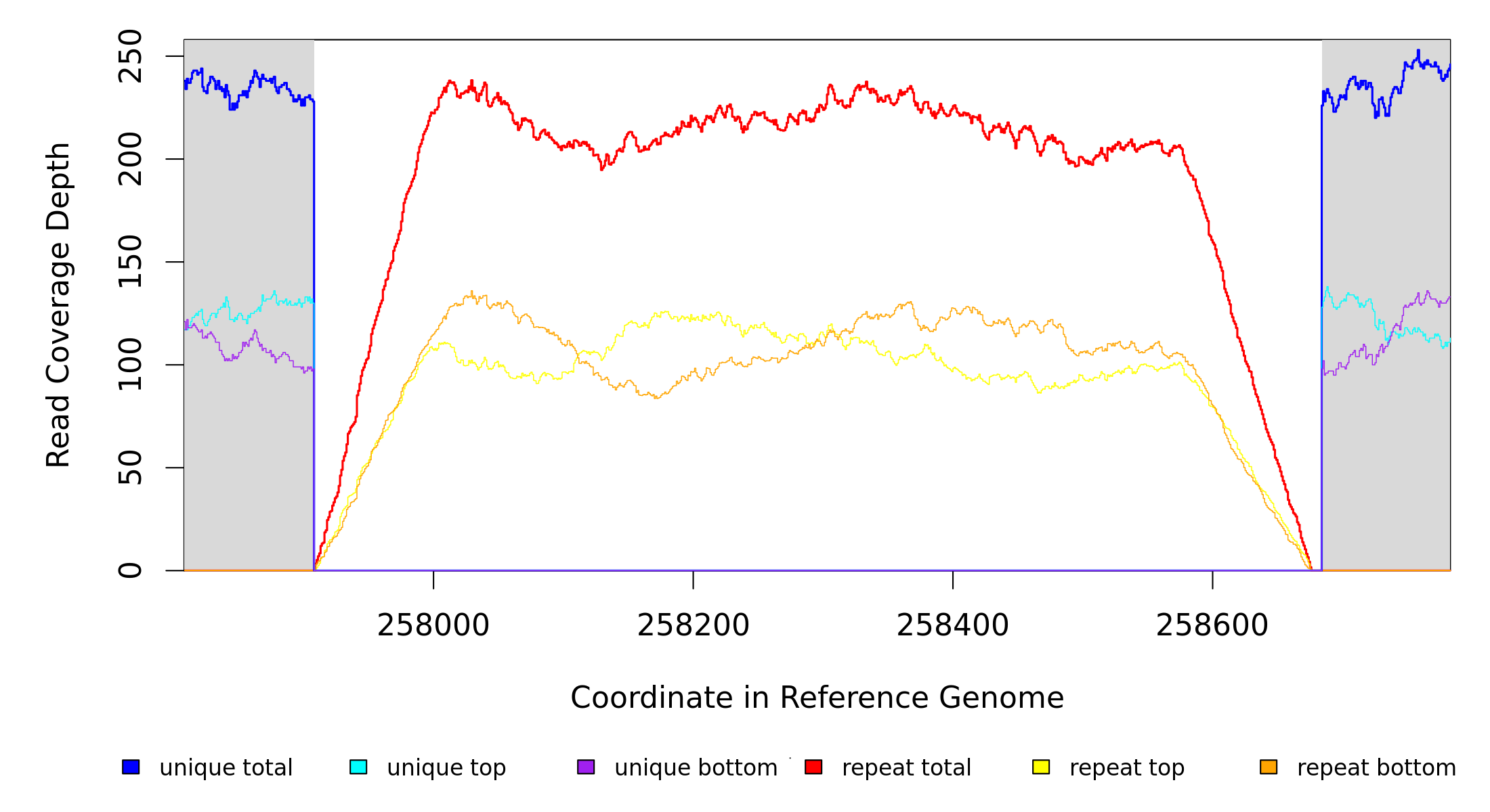 | seq id | start | end | size | ←reads | reads→ | gene | description | |||