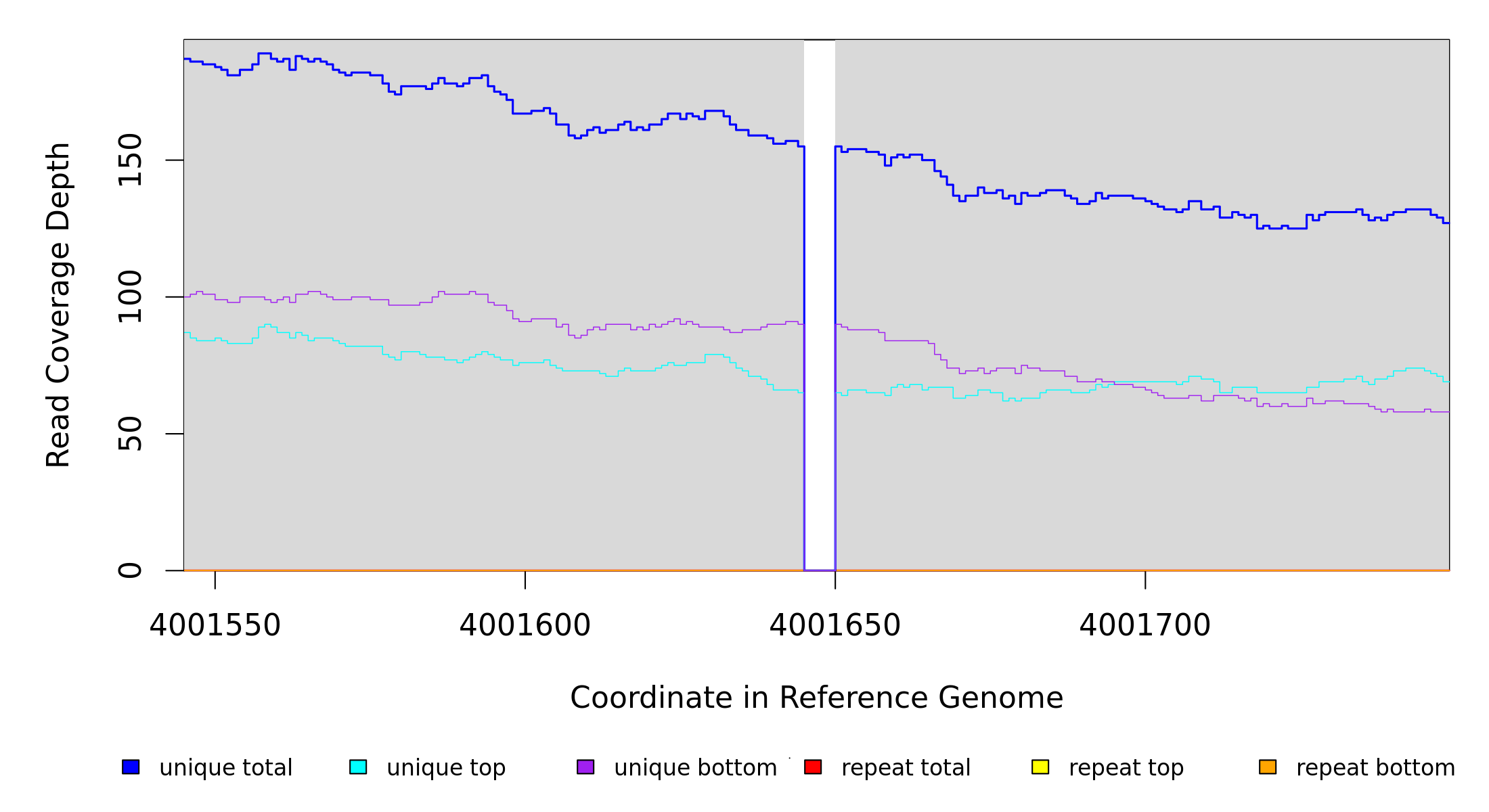 | seq id | start | end | size | ←reads | reads→ | gene | description | |||