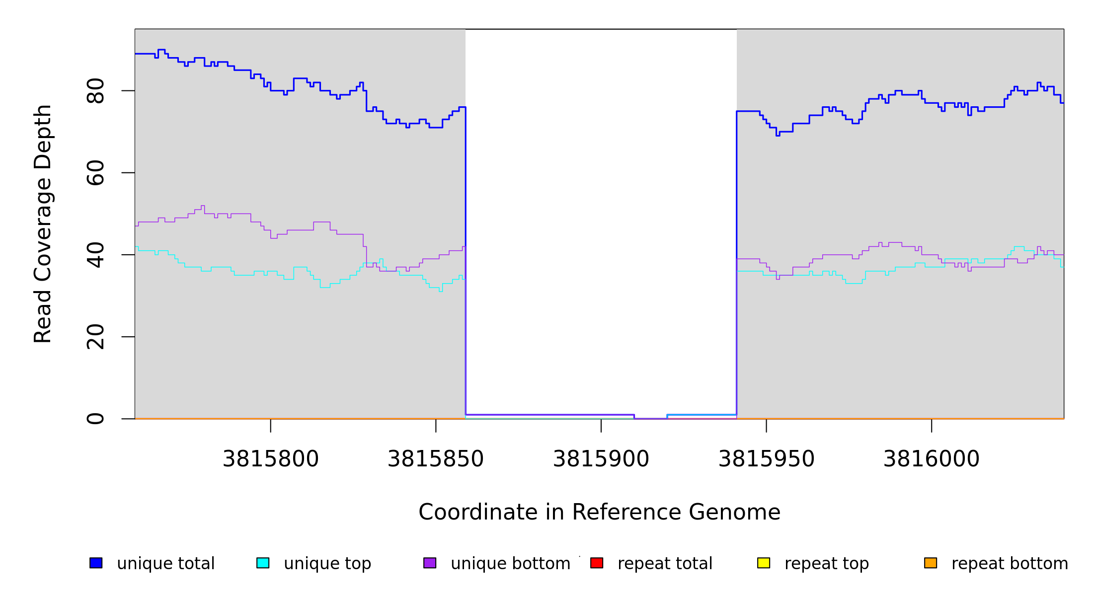 | seq id | start | end | size | ←reads | reads→ | gene | description | |||