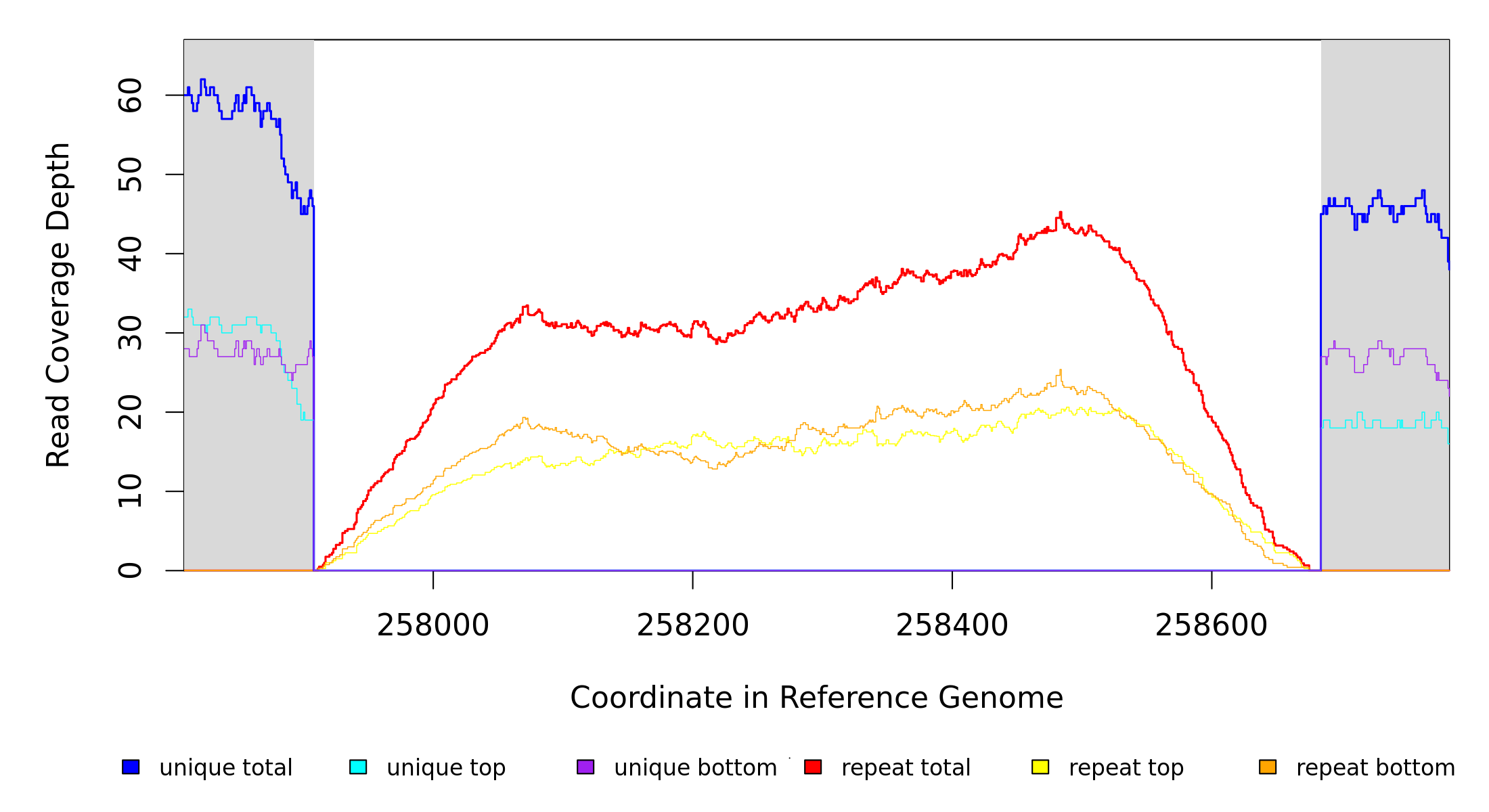 | seq id | start | end | size | ←reads | reads→ | gene | description | |||