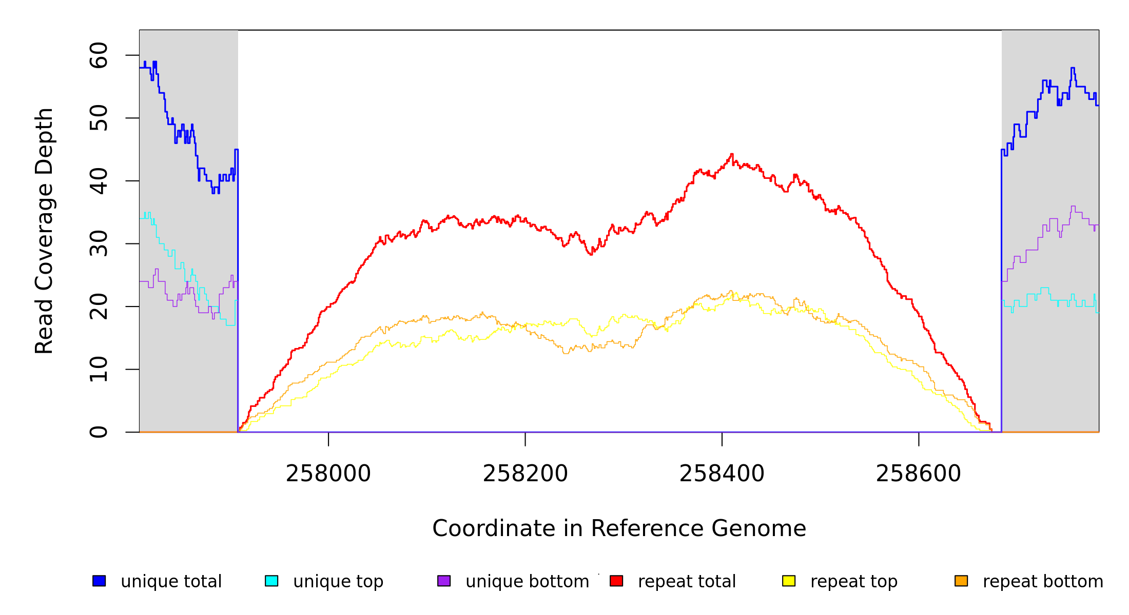 | seq id | start | end | size | ←reads | reads→ | gene | description | |||