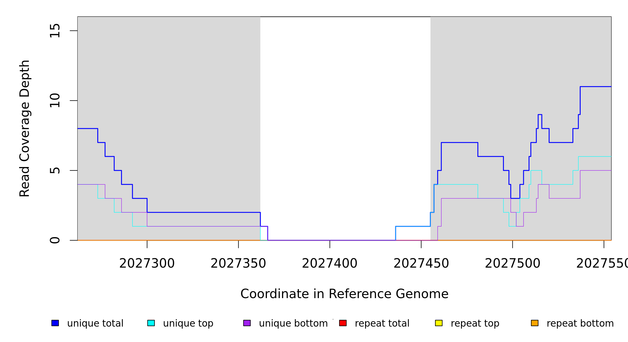 | seq id | start | end | size | ←reads | reads→ | gene | description | |||