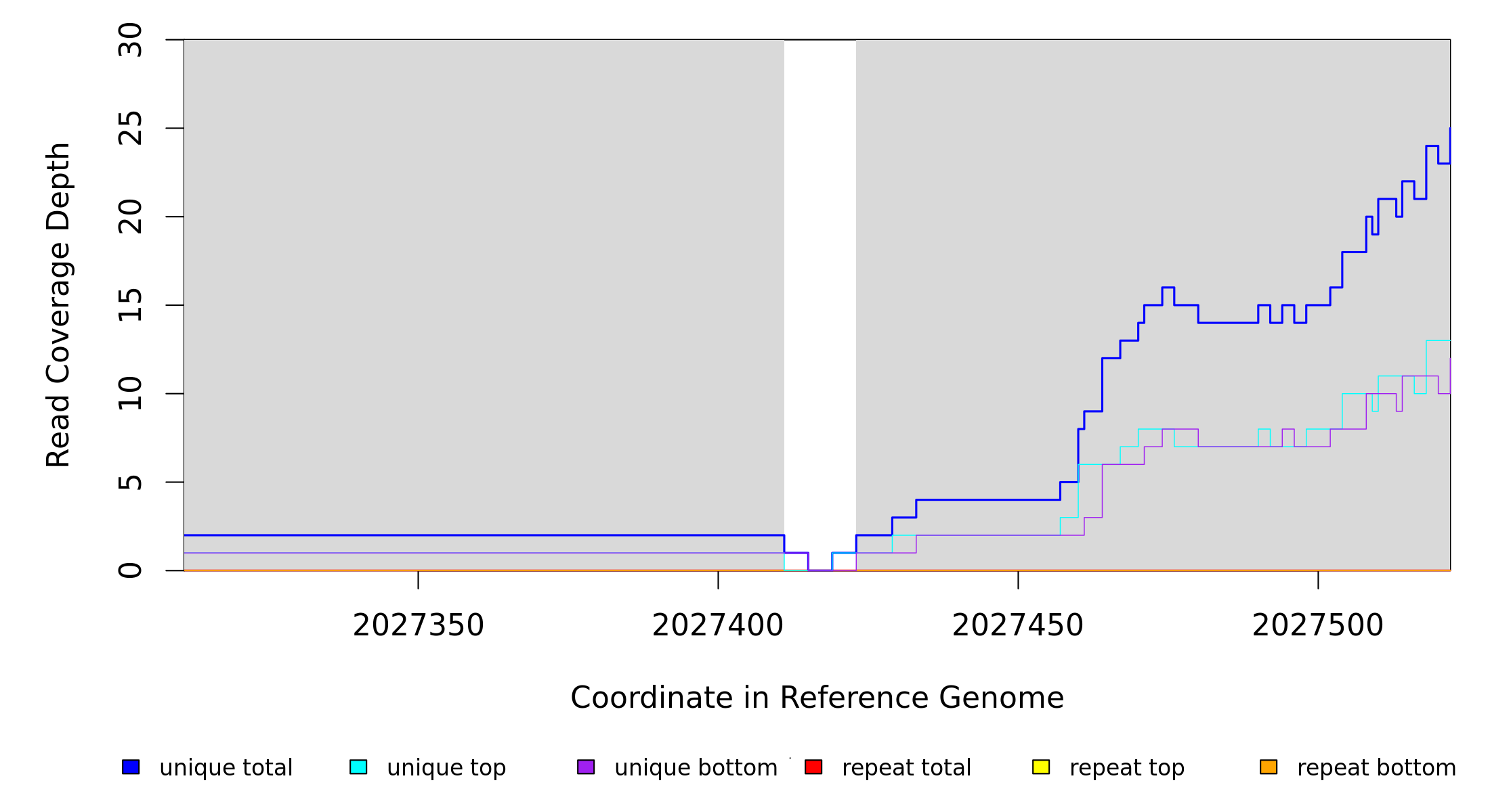 | seq id | start | end | size | ←reads | reads→ | gene | description | |||