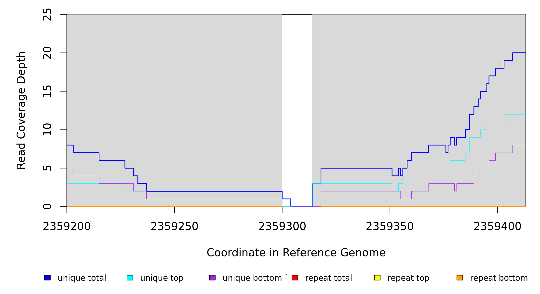 | seq id | start | end | size | ←reads | reads→ | gene | description | |||