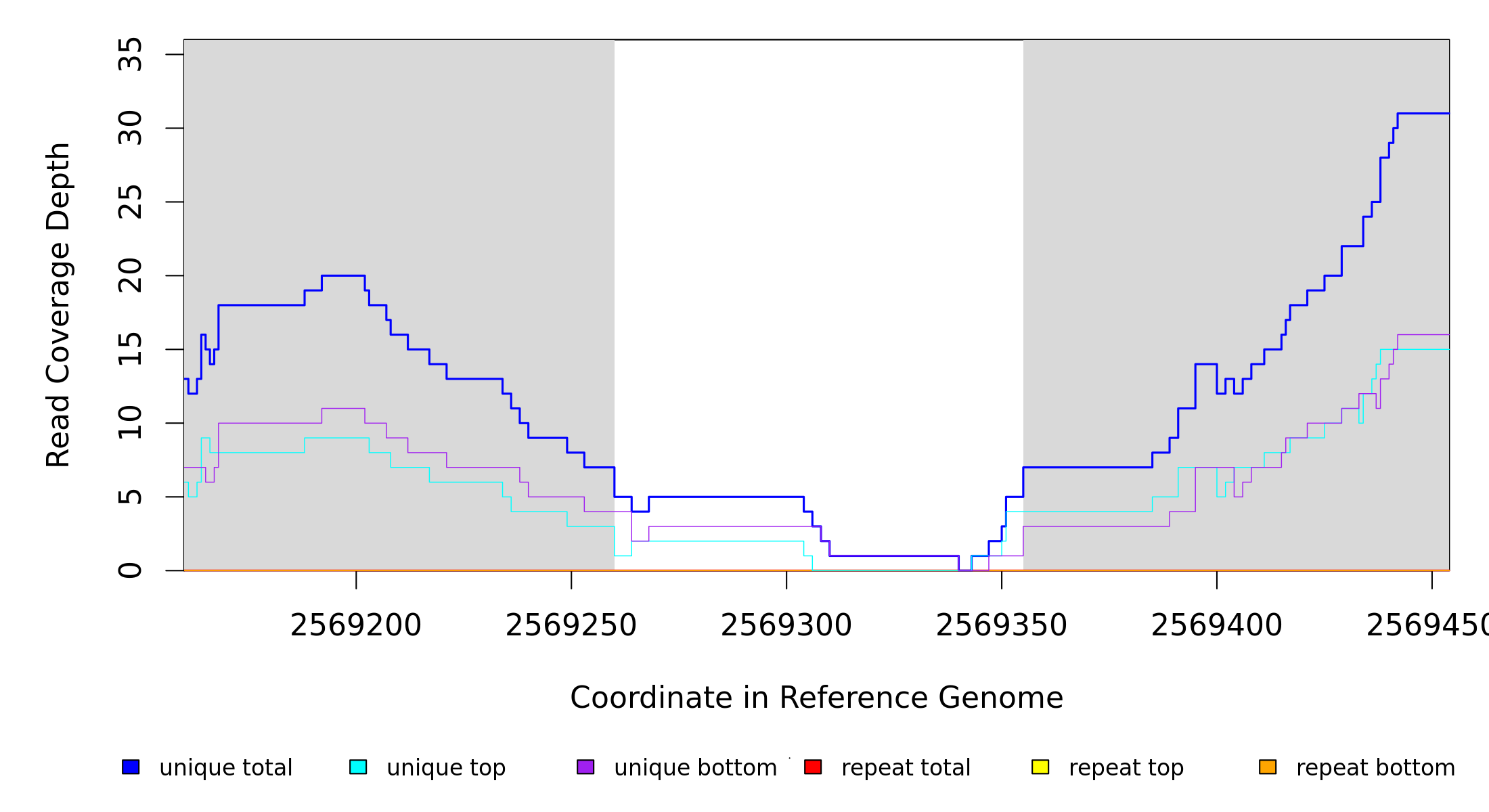 | seq id | start | end | size | ←reads | reads→ | gene | description | |||
