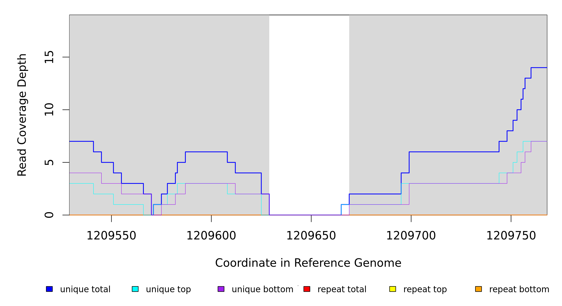 | seq id | start | end | size | ←reads | reads→ | gene | description | |||