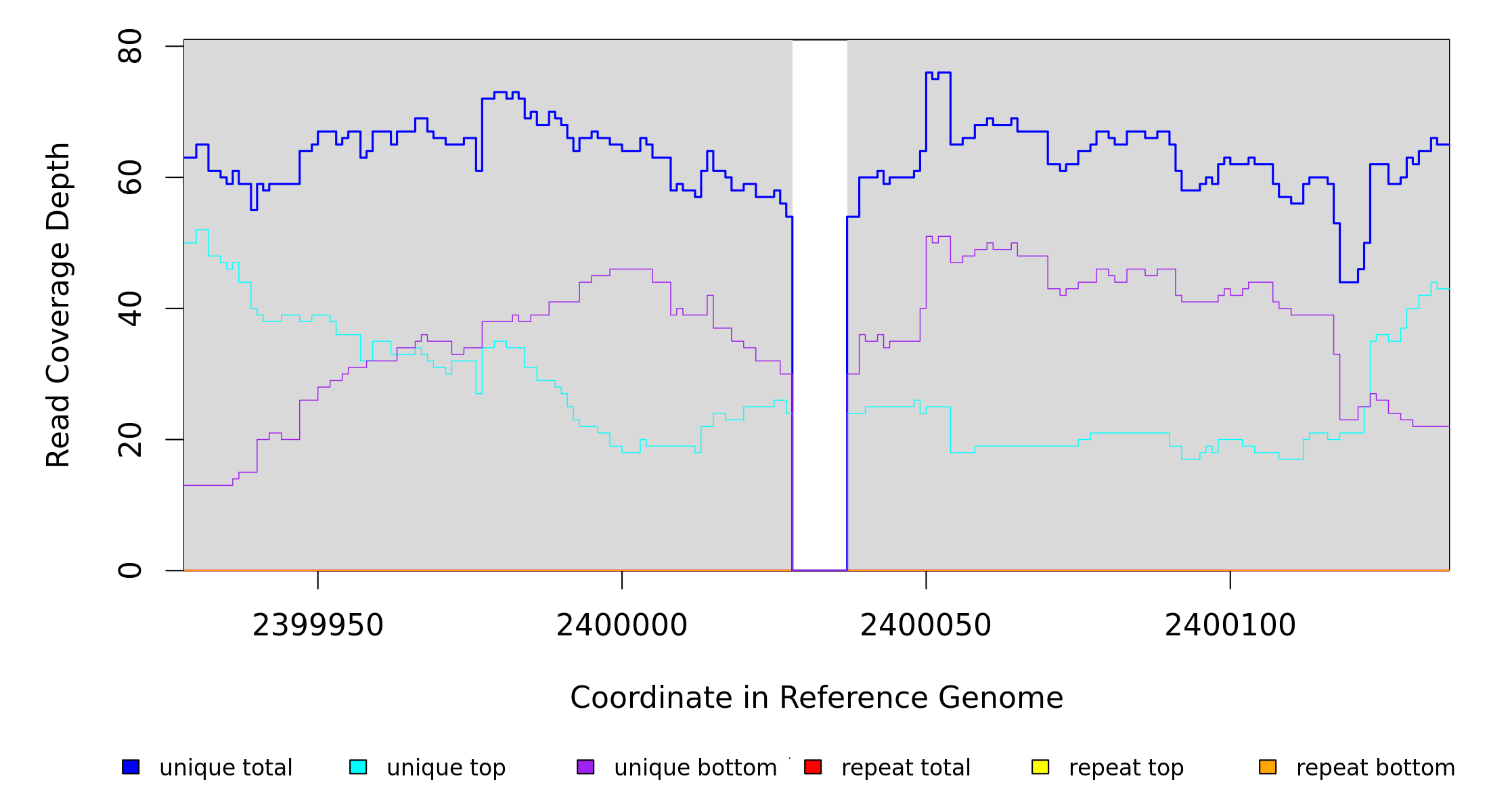 | seq id | start | end | size | ←reads | reads→ | gene | description | |||