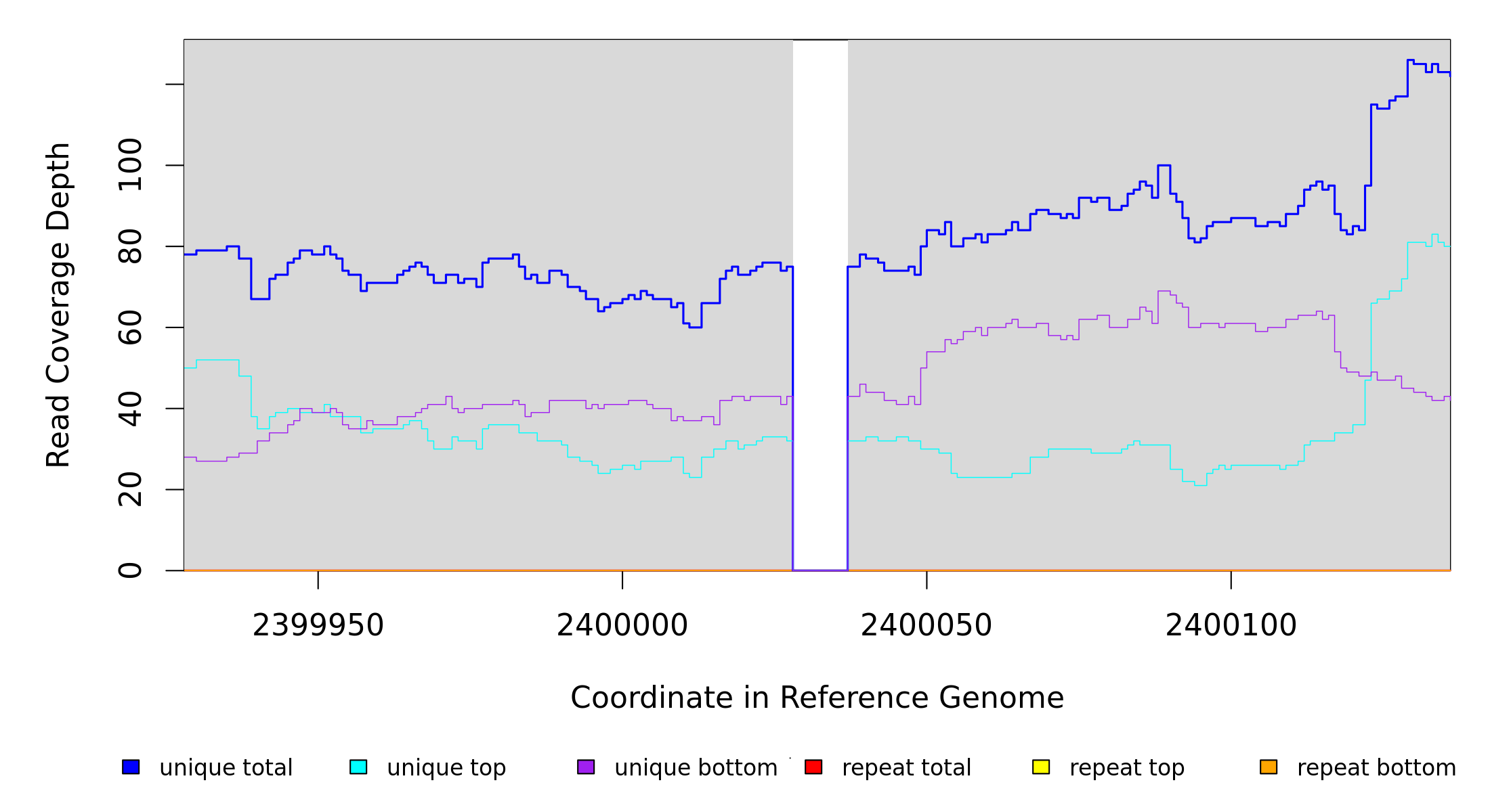 | seq id | start | end | size | ←reads | reads→ | gene | description | |||