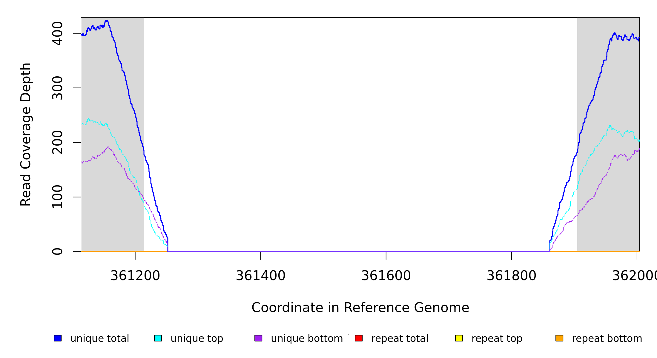 | seq id | start | end | size | ←reads | reads→ | gene | description | |||