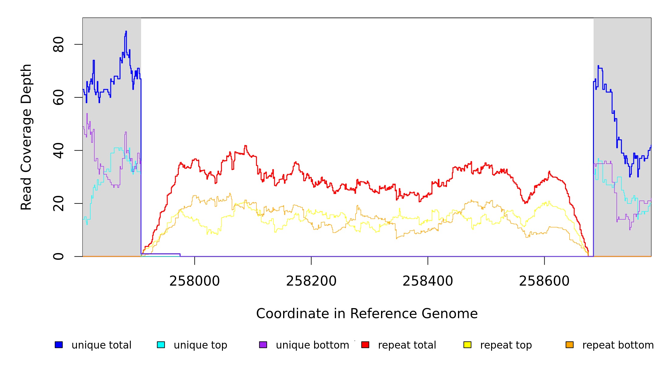 | seq id | start | end | size | ←reads | reads→ | gene | description | |||