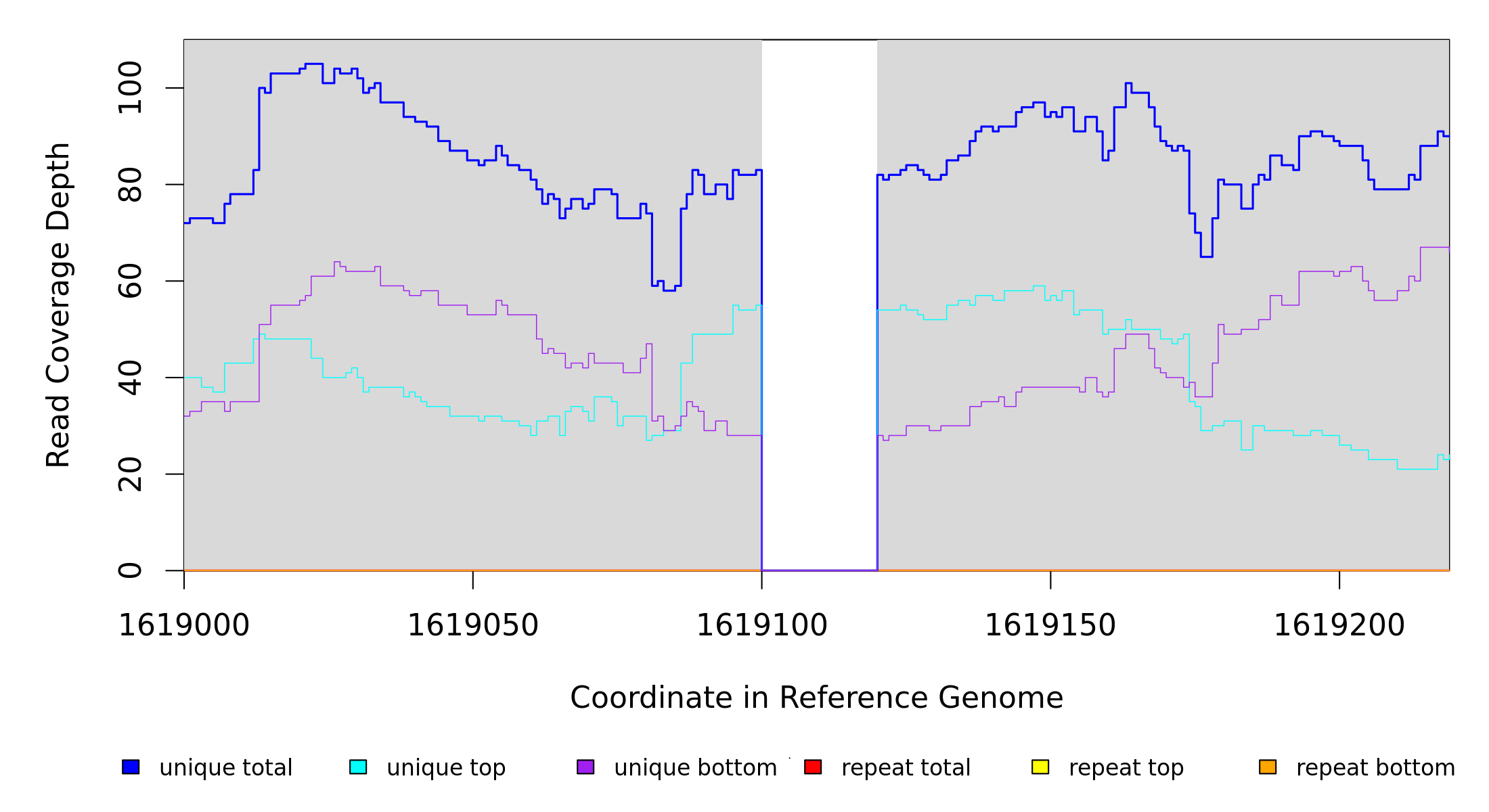 | seq id | start | end | size | ←reads | reads→ | gene | description | |||