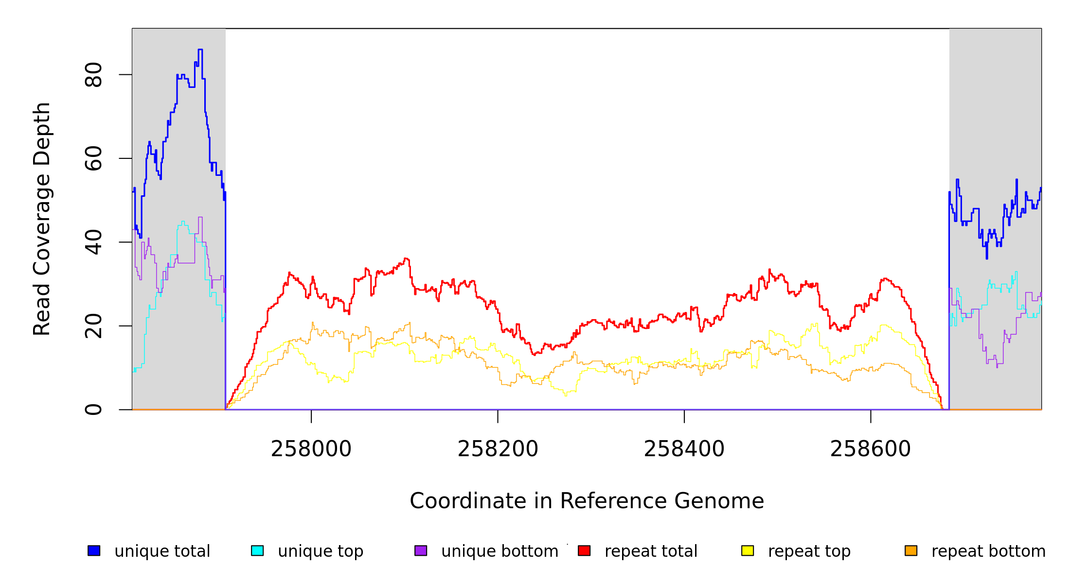 | seq id | start | end | size | ←reads | reads→ | gene | description | |||