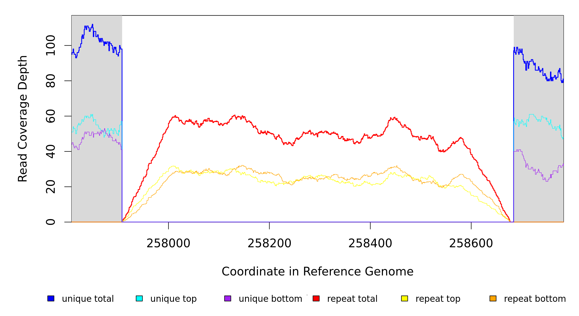 | seq id | start | end | size | ←reads | reads→ | gene | description | |||