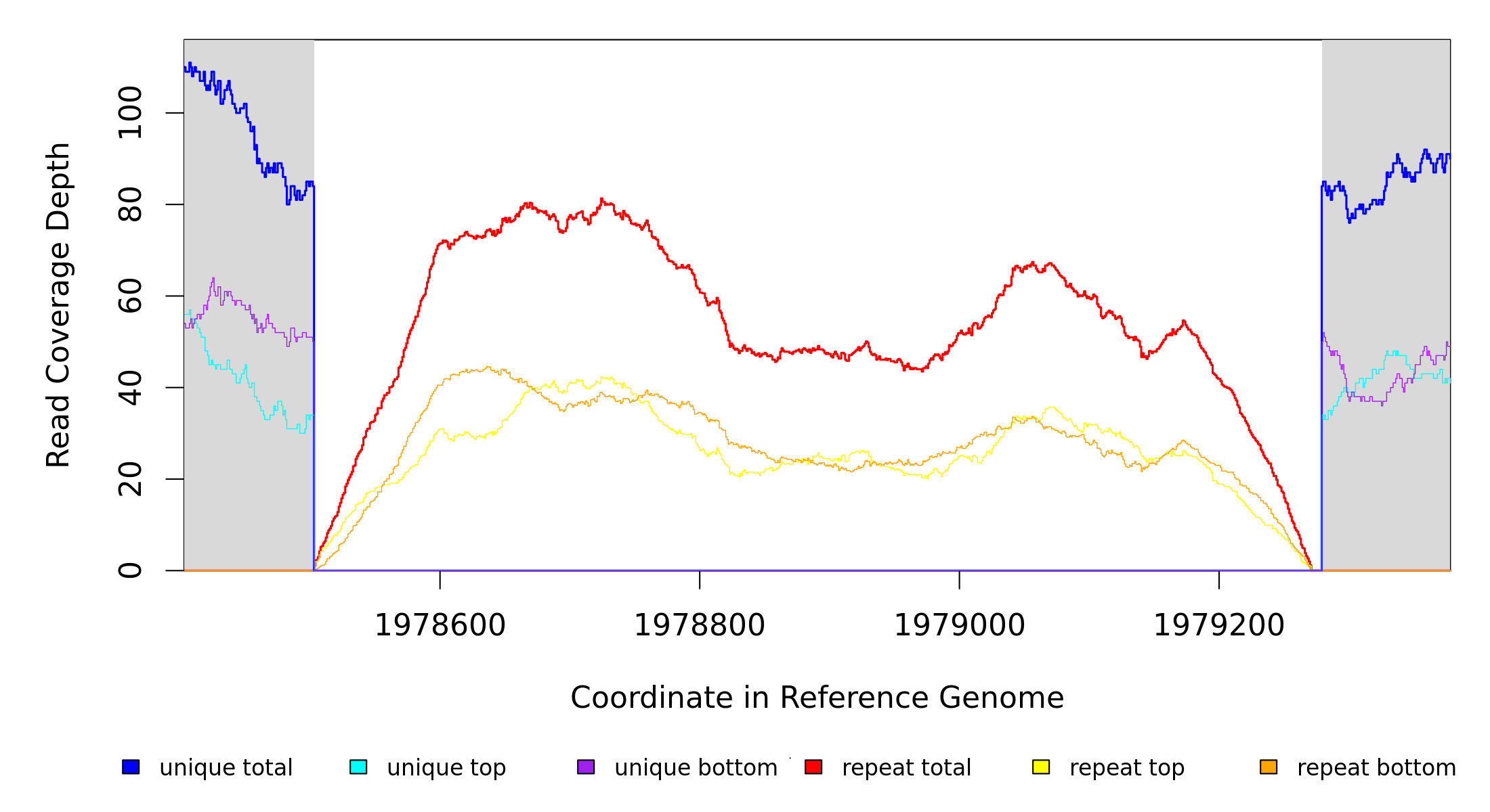 | seq id | start | end | size | ←reads | reads→ | gene | description | |||