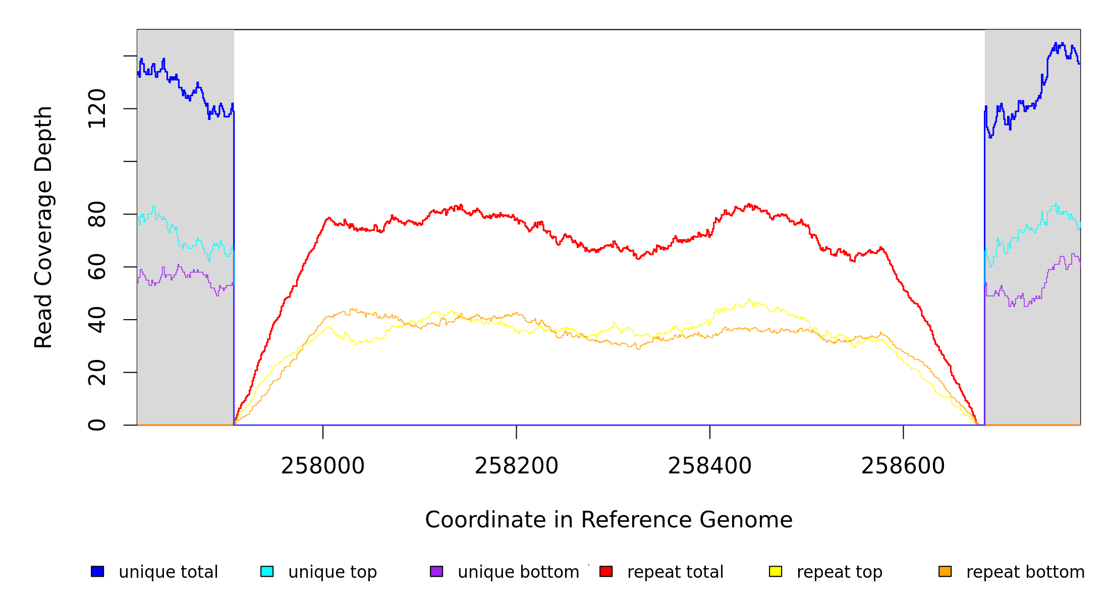 | seq id | start | end | size | ←reads | reads→ | gene | description | |||