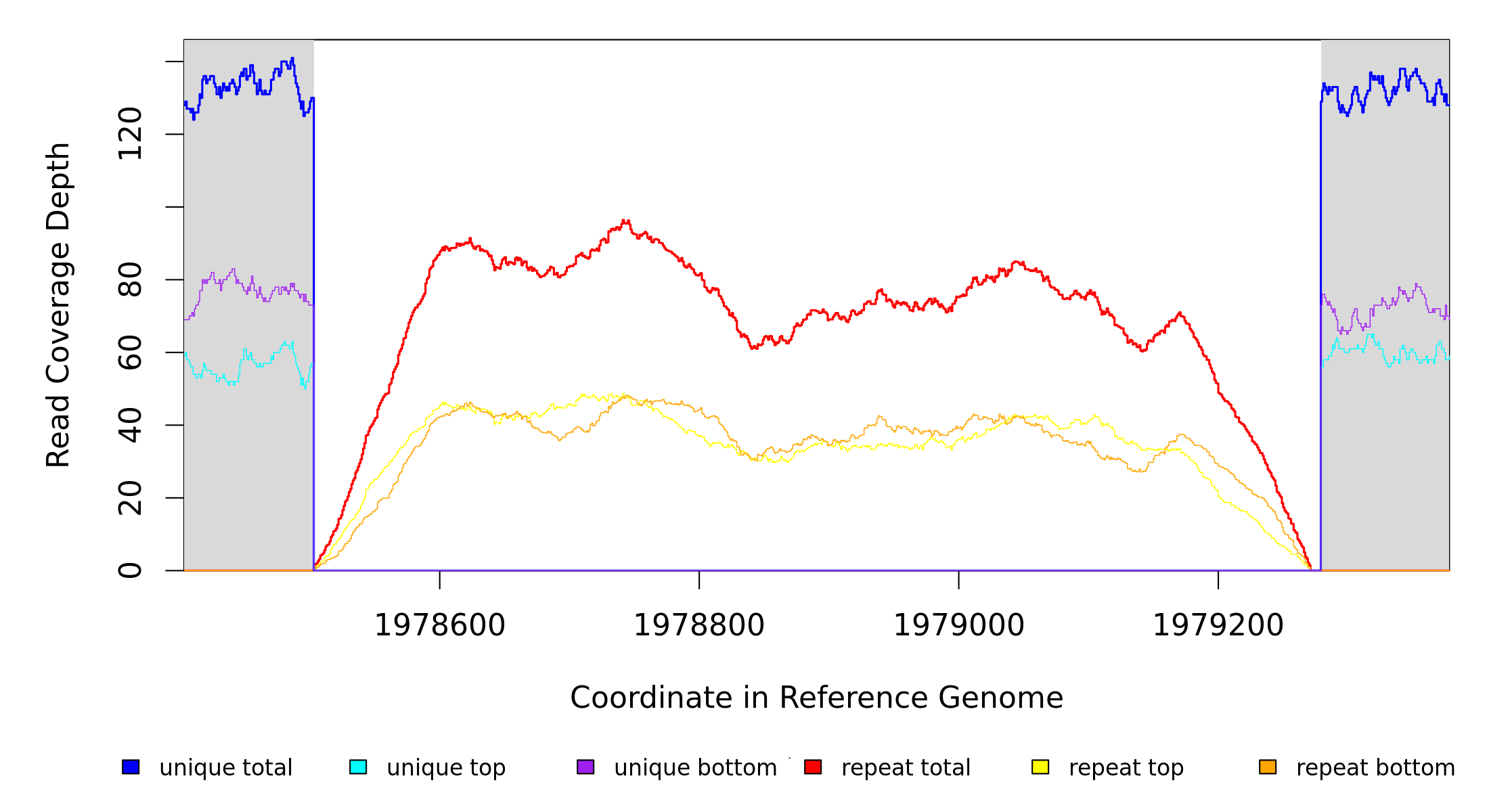 | seq id | start | end | size | ←reads | reads→ | gene | description | |||