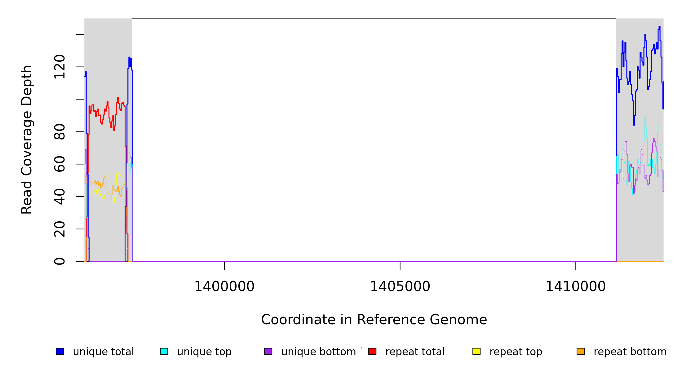 | seq id | start | end | size | ←reads | reads→ | gene | description | |||