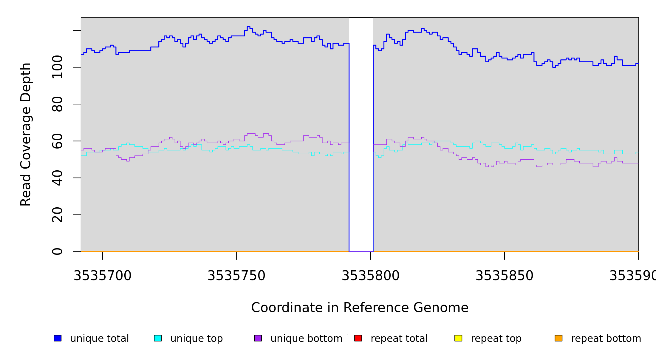 | seq id | start | end | size | ←reads | reads→ | gene | description | |||