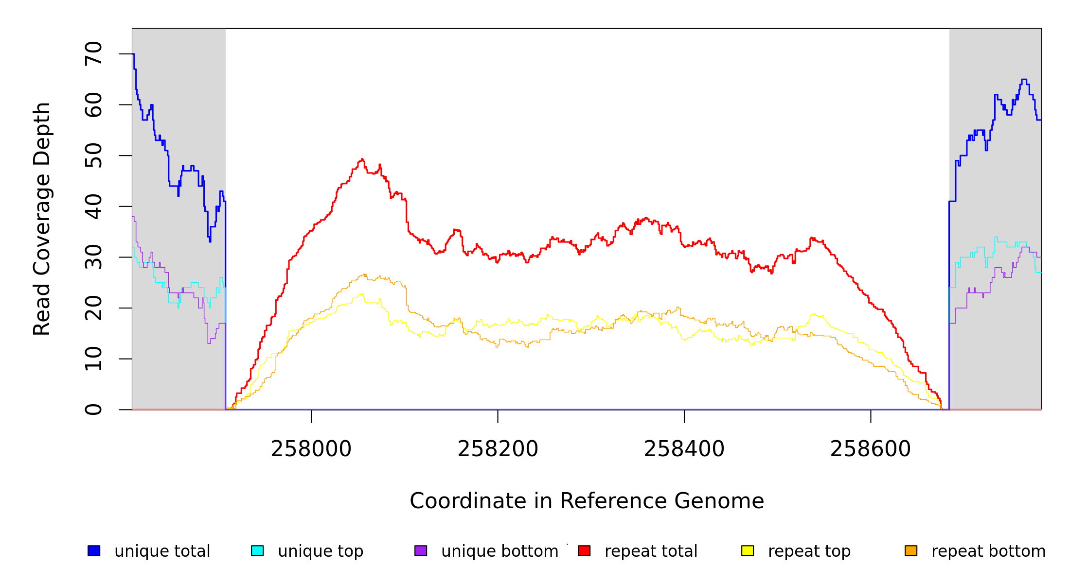 | seq id | start | end | size | ←reads | reads→ | gene | description | |||