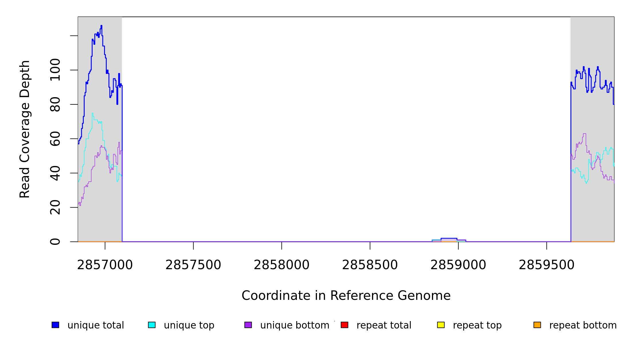| seq id | start | end | size | ←reads | reads→ | gene | description | |||