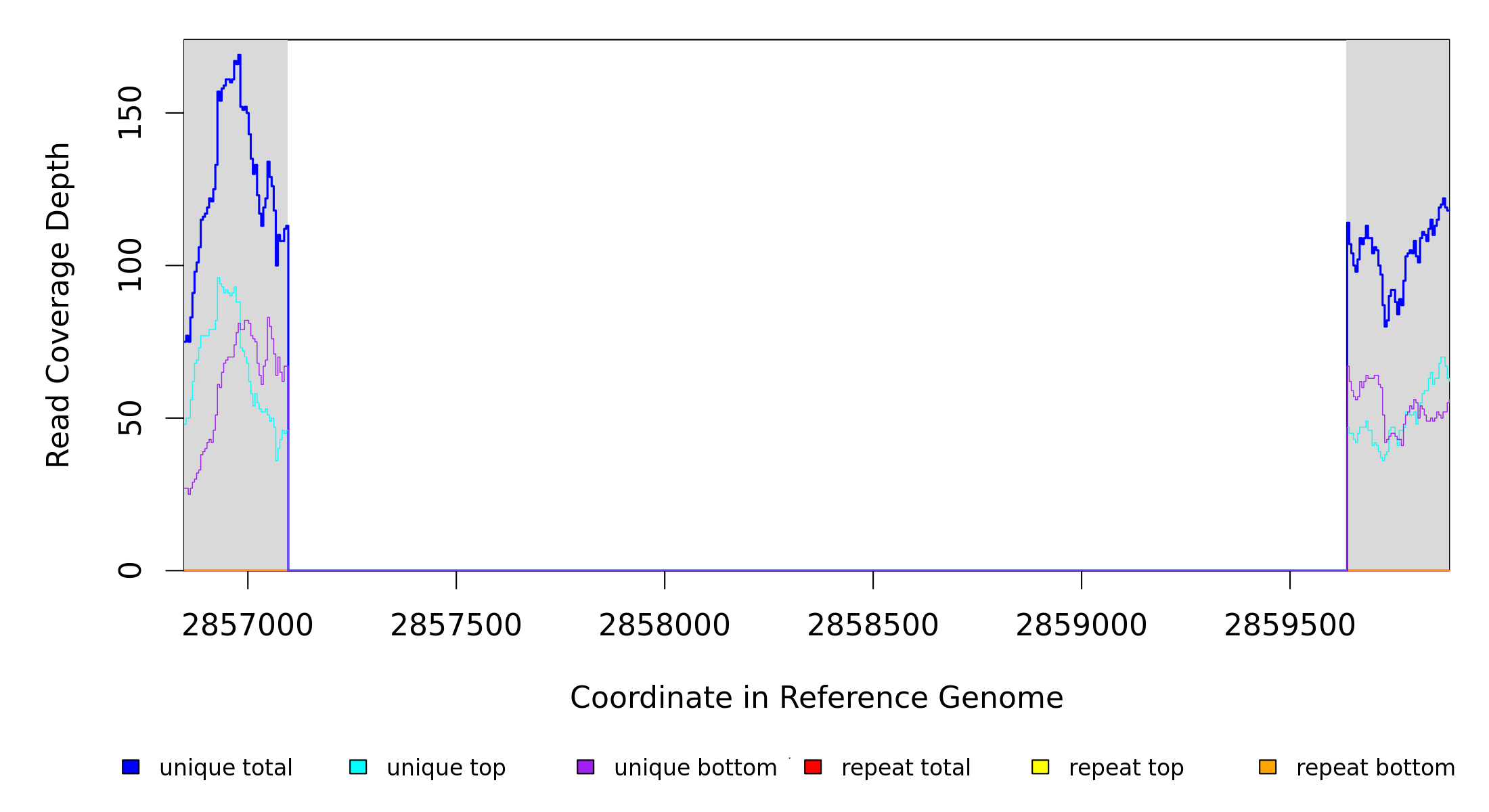 | seq id | start | end | size | ←reads | reads→ | gene | description | |||