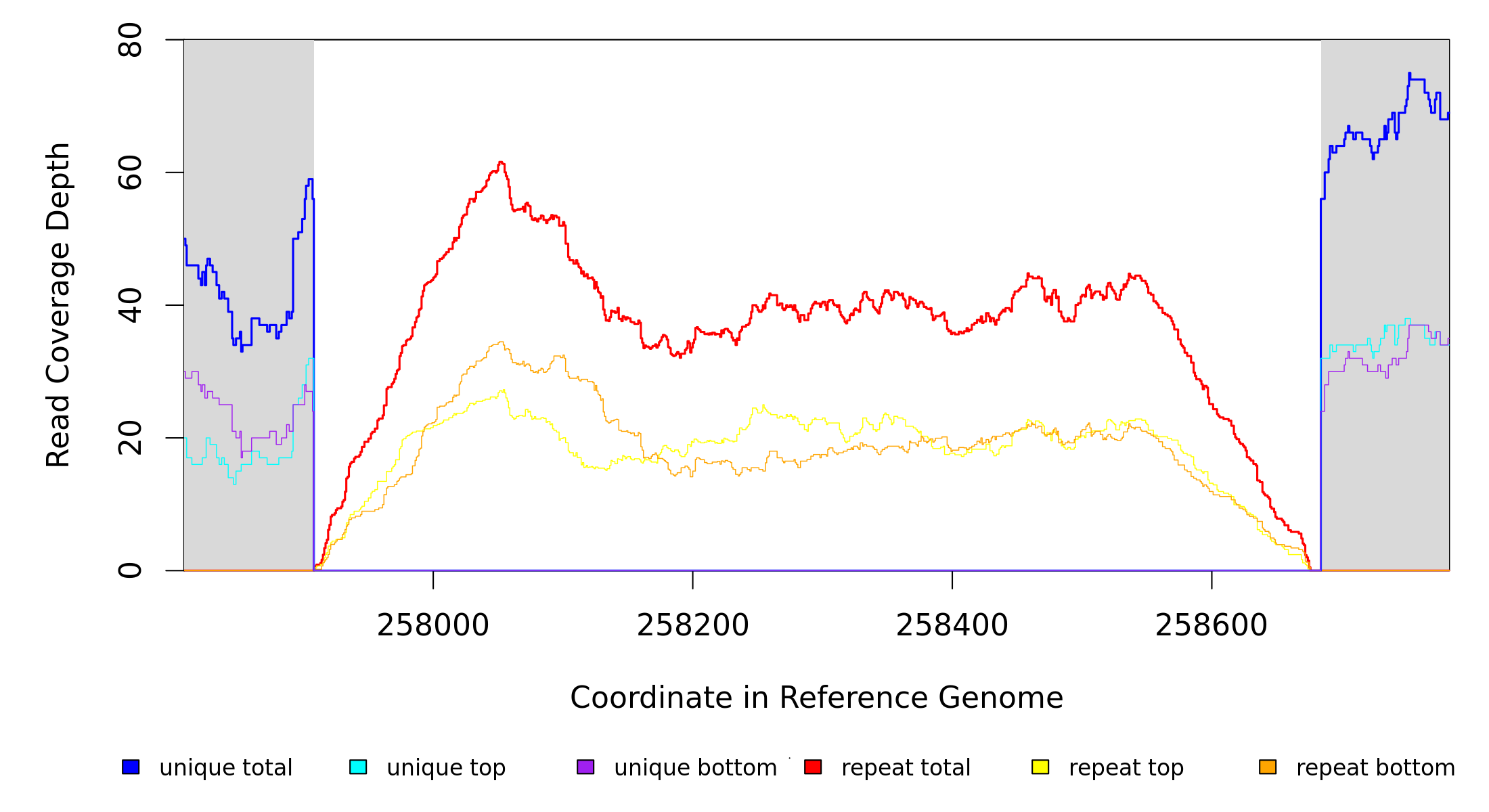 | seq id | start | end | size | ←reads | reads→ | gene | description | |||