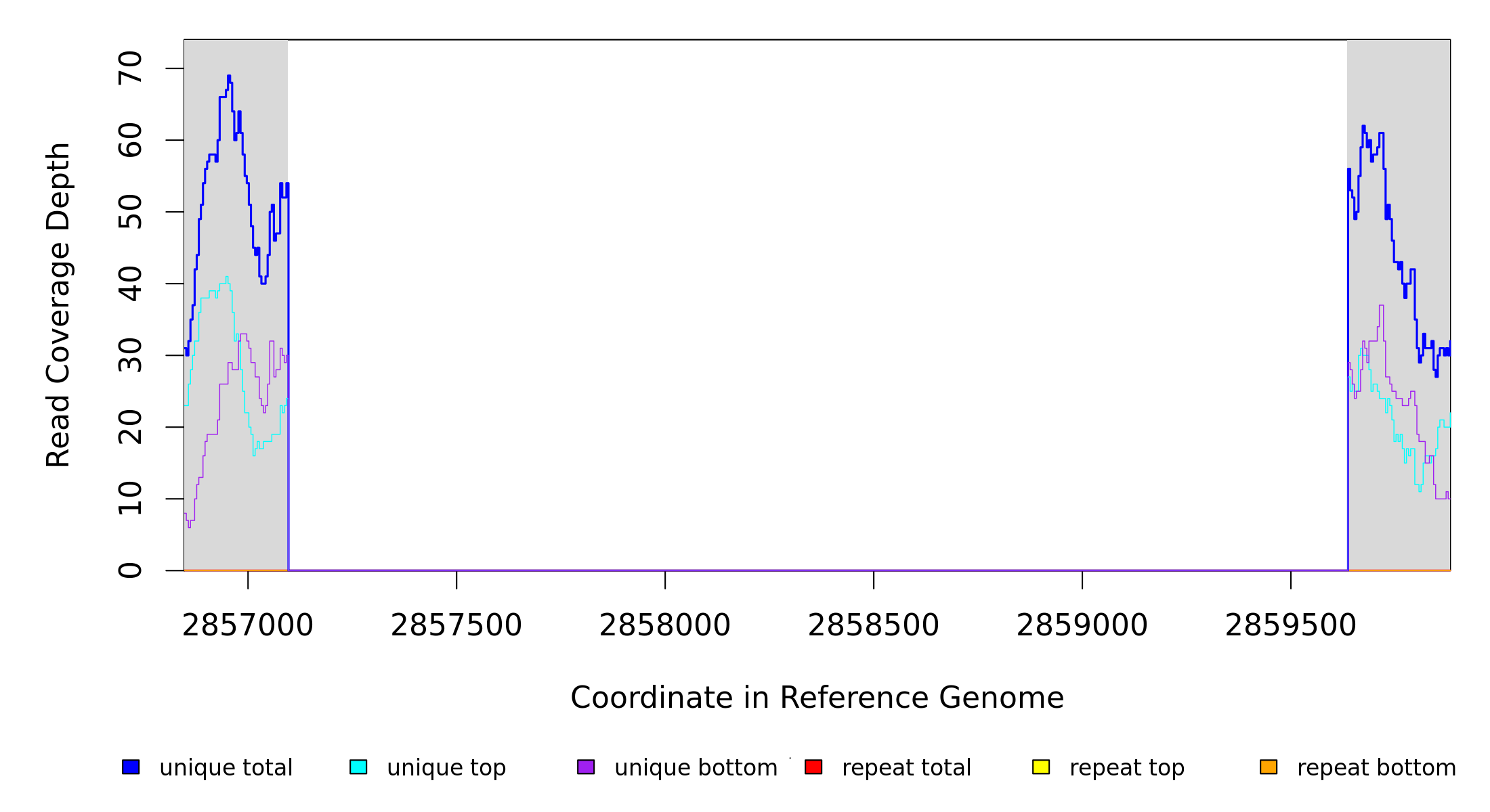 | seq id | start | end | size | ←reads | reads→ | gene | description | |||