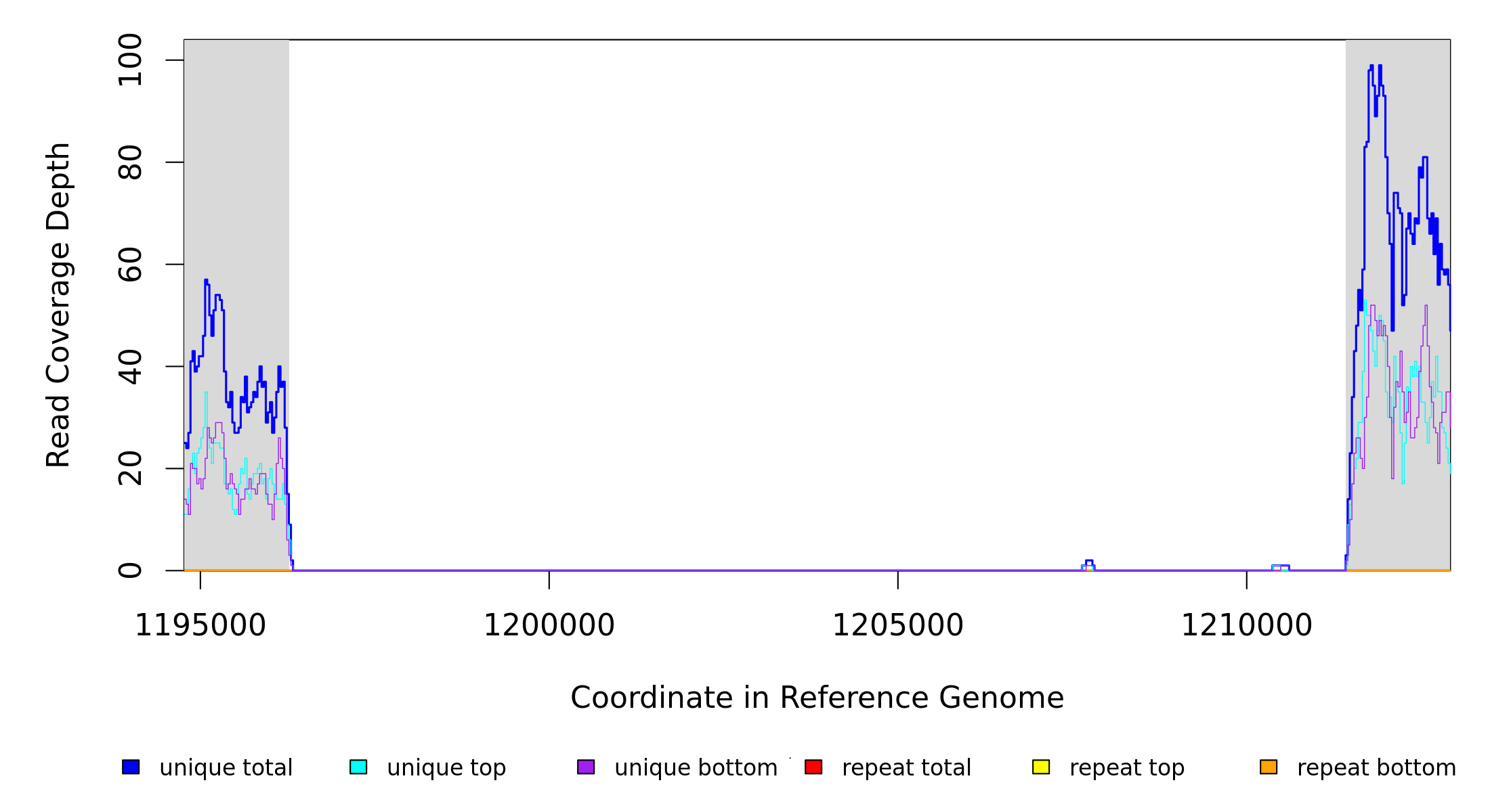 | seq id | start | end | size | ←reads | reads→ | gene | description | |||
