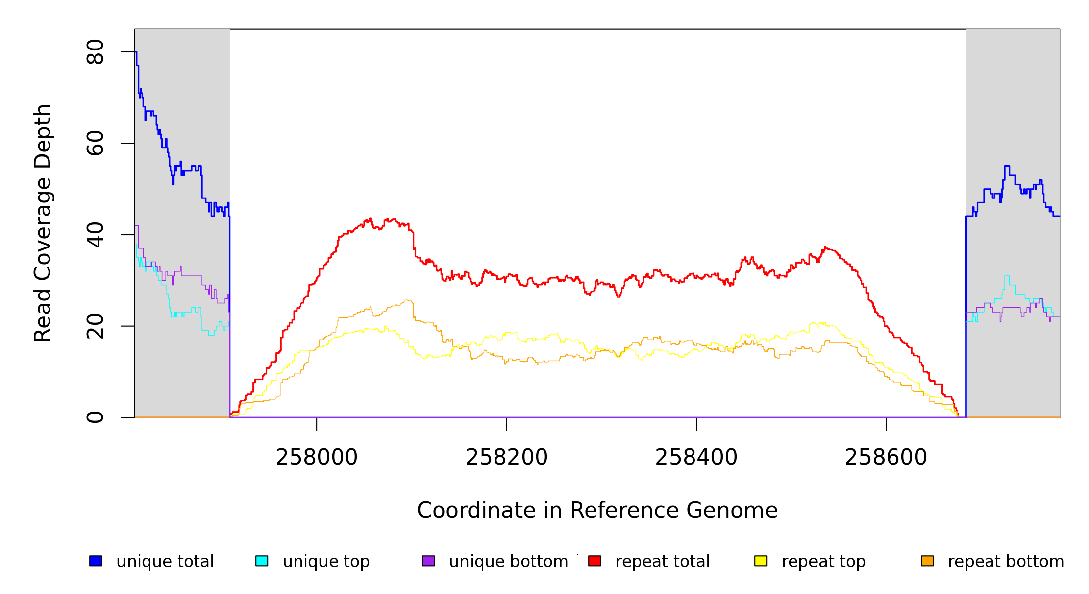 | seq id | start | end | size | ←reads | reads→ | gene | description | |||