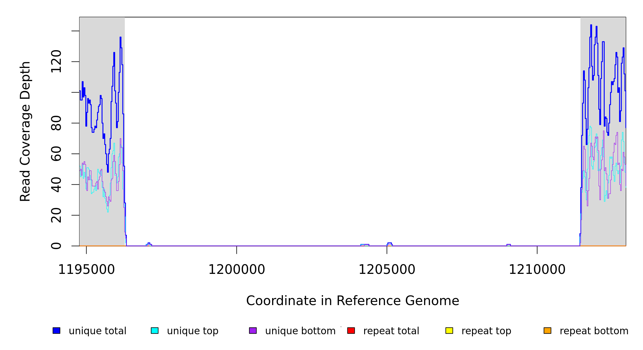 | seq id | start | end | size | ←reads | reads→ | gene | description | |||