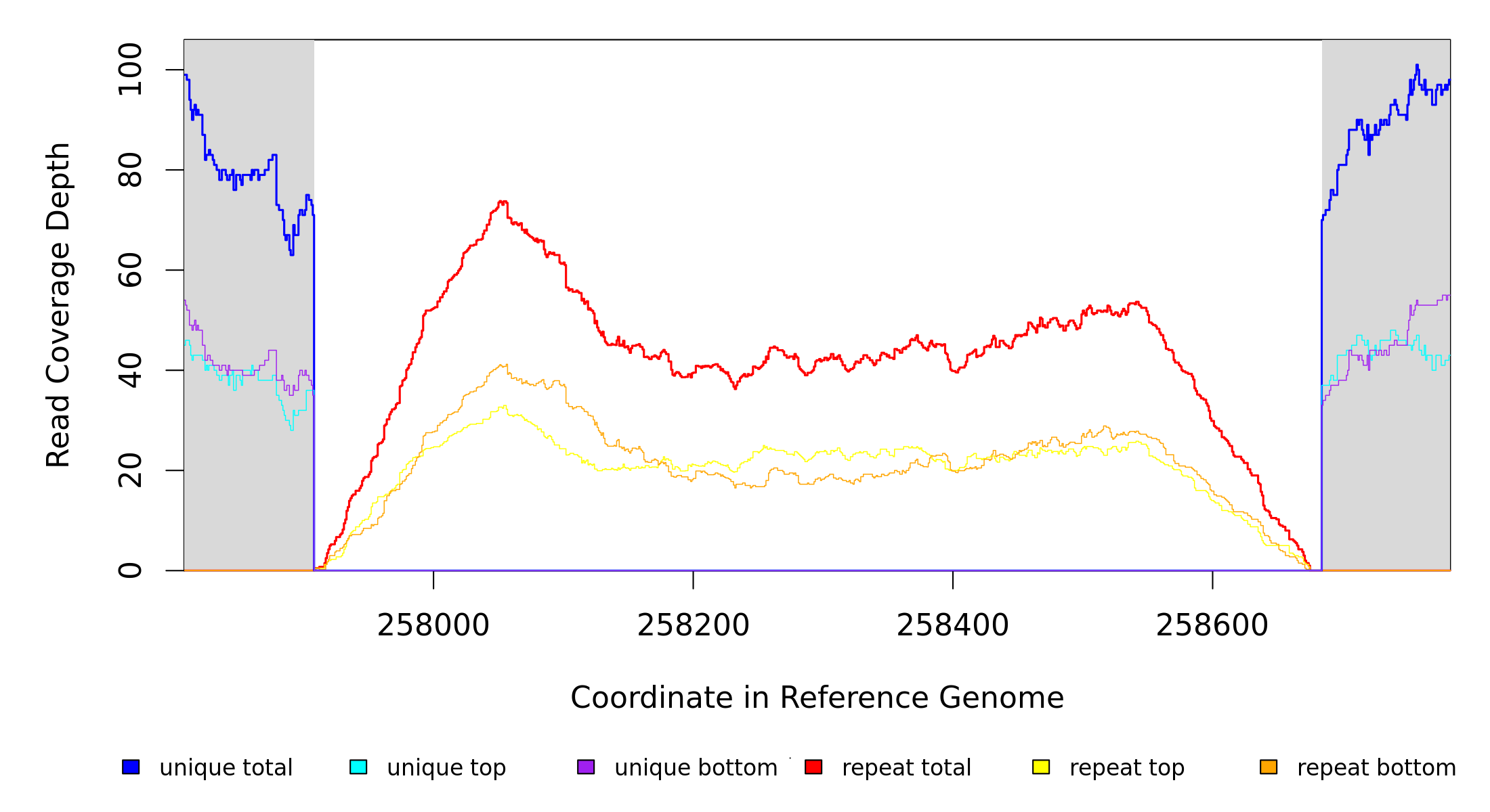 | seq id | start | end | size | ←reads | reads→ | gene | description | |||
