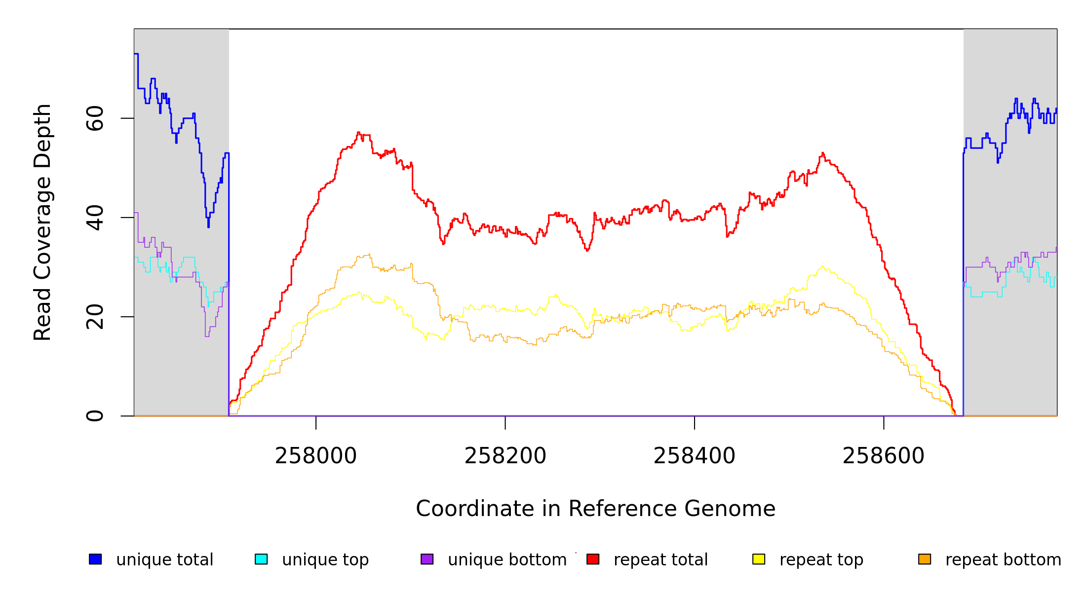 | seq id | start | end | size | ←reads | reads→ | gene | description | |||
