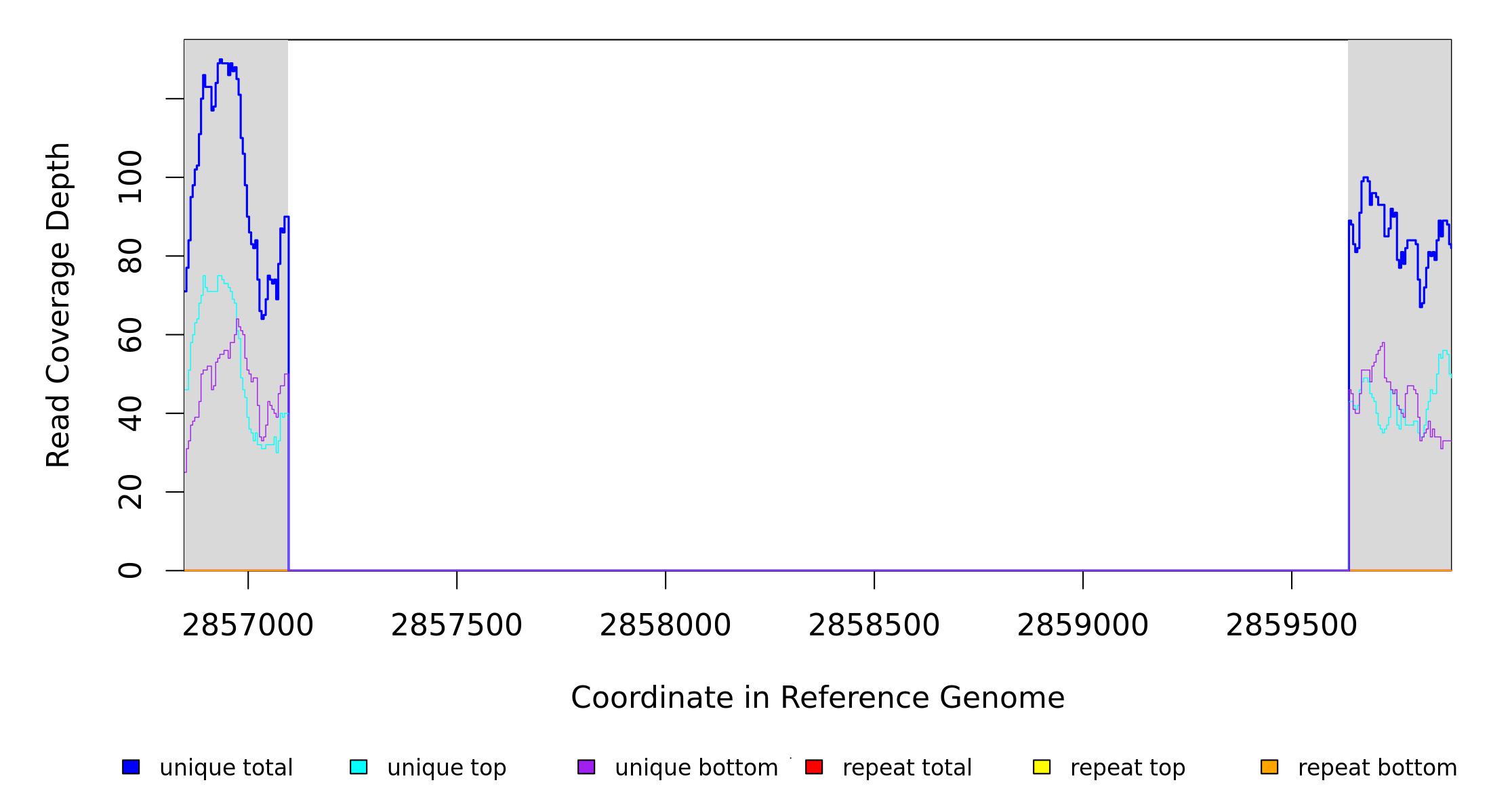 | seq id | start | end | size | ←reads | reads→ | gene | description | |||