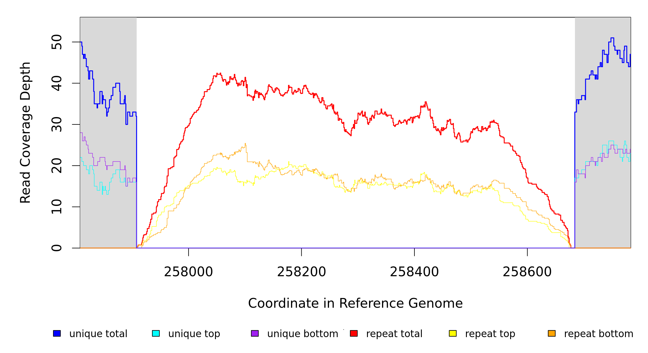 | seq id | start | end | size | ←reads | reads→ | gene | description | |||