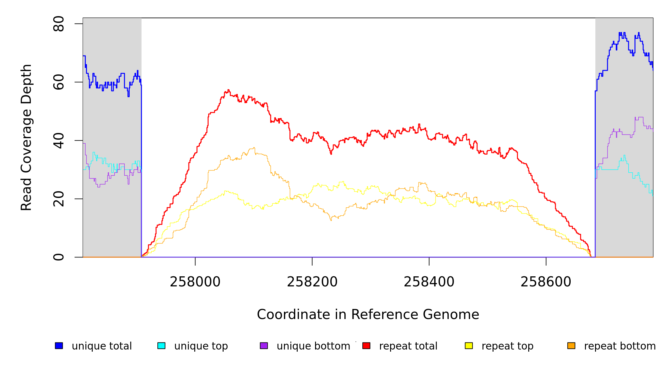 | seq id | start | end | size | ←reads | reads→ | gene | description | |||