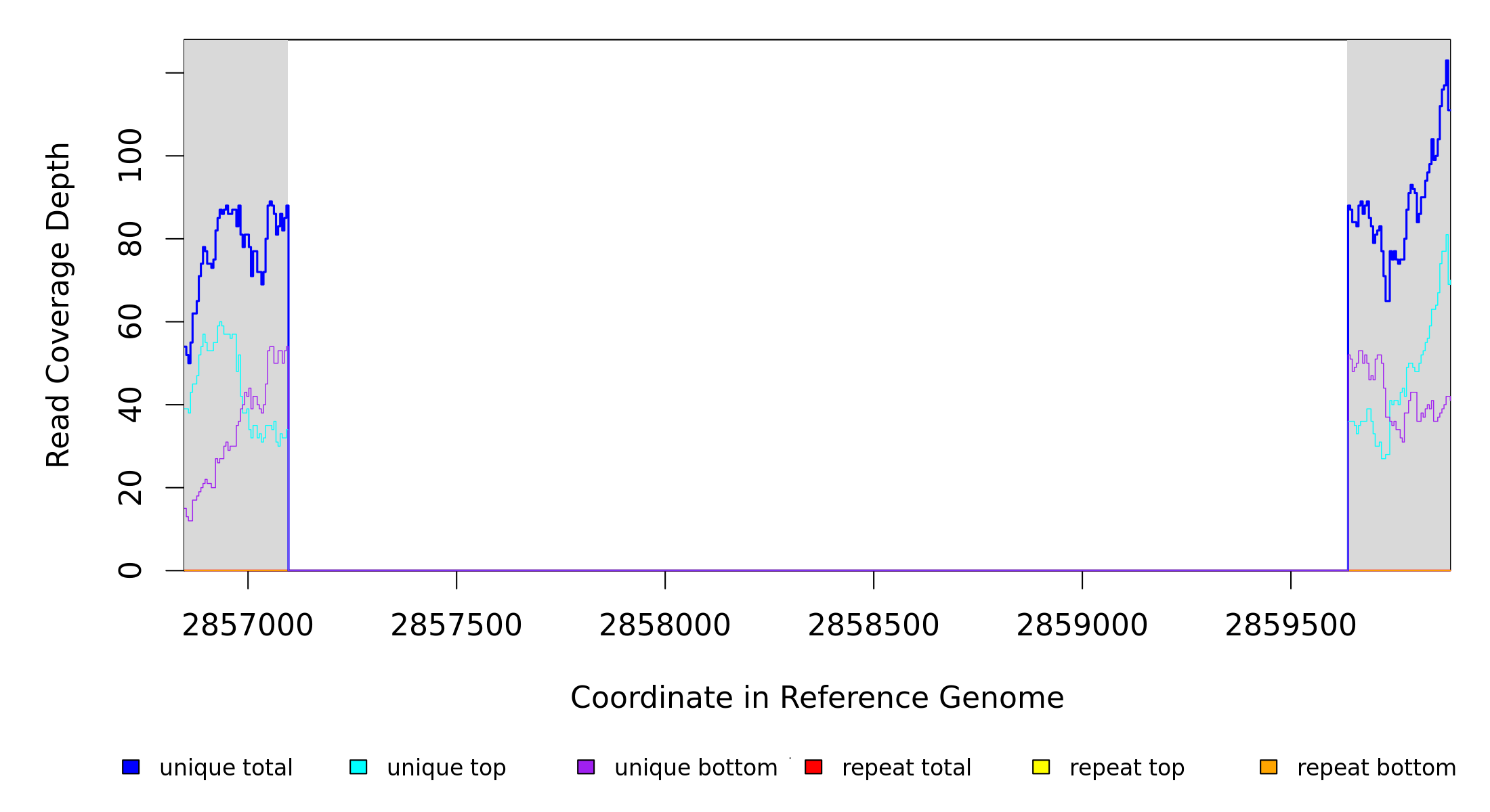| seq id | start | end | size | ←reads | reads→ | gene | description | |||