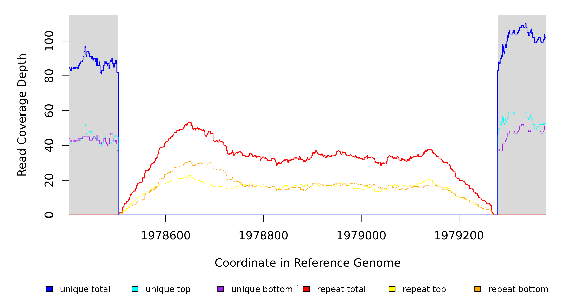 | seq id | start | end | size | ←reads | reads→ | gene | description | |||