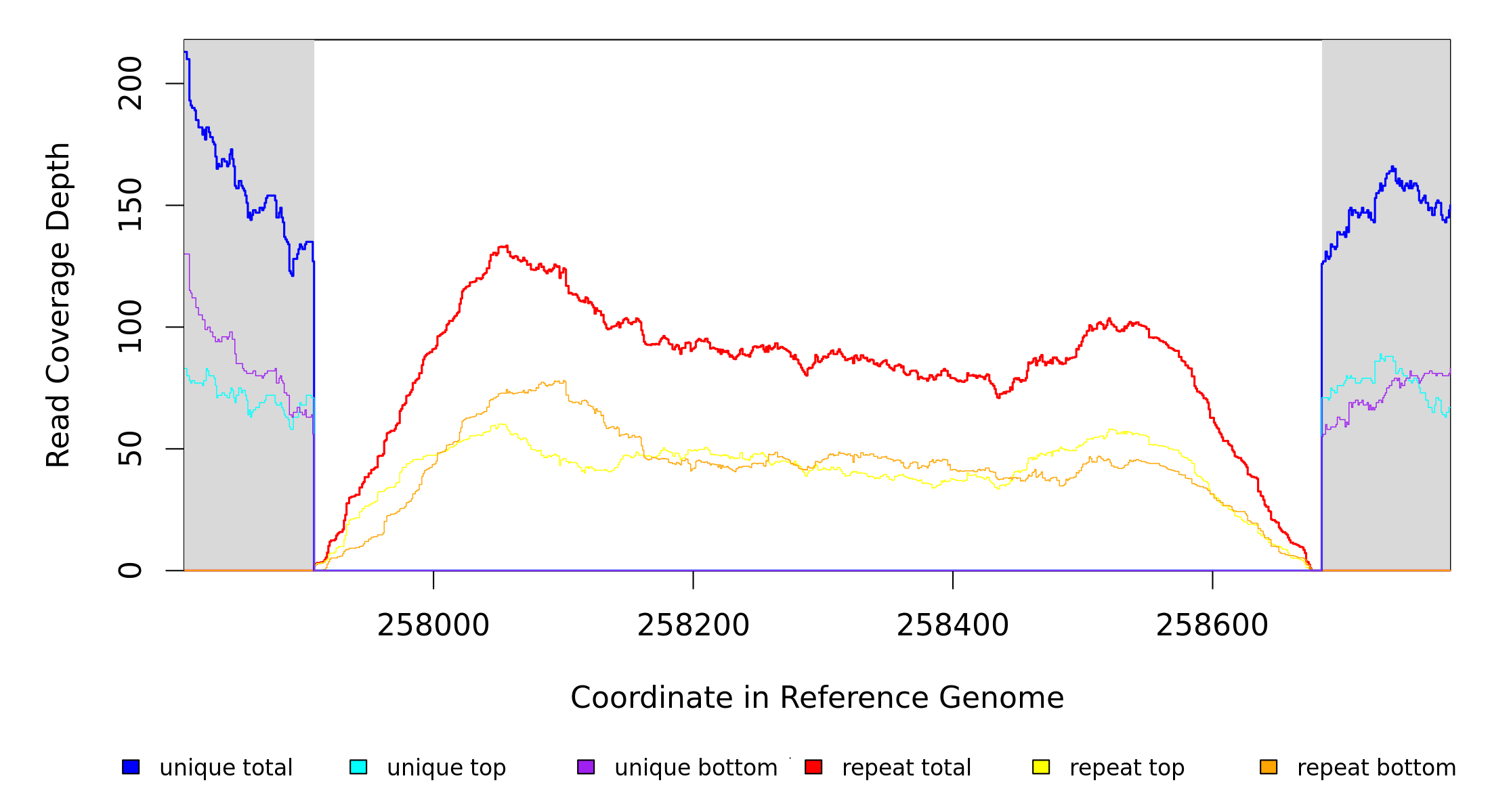 | seq id | start | end | size | ←reads | reads→ | gene | description | |||