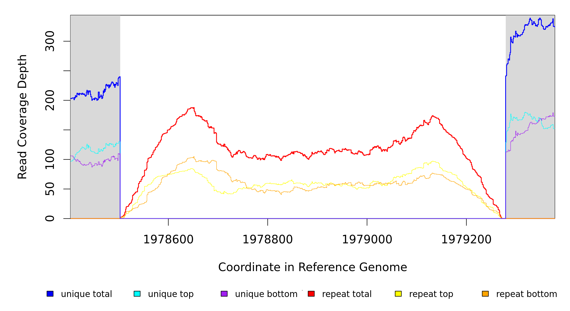 | seq id | start | end | size | ←reads | reads→ | gene | description | |||