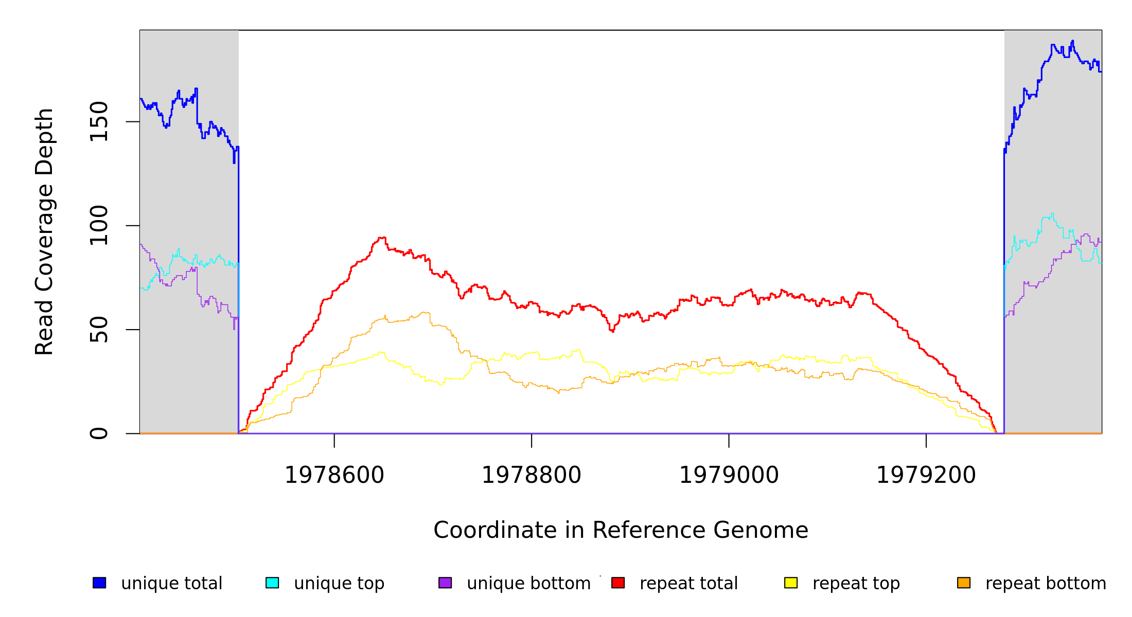 | seq id | start | end | size | ←reads | reads→ | gene | description | |||