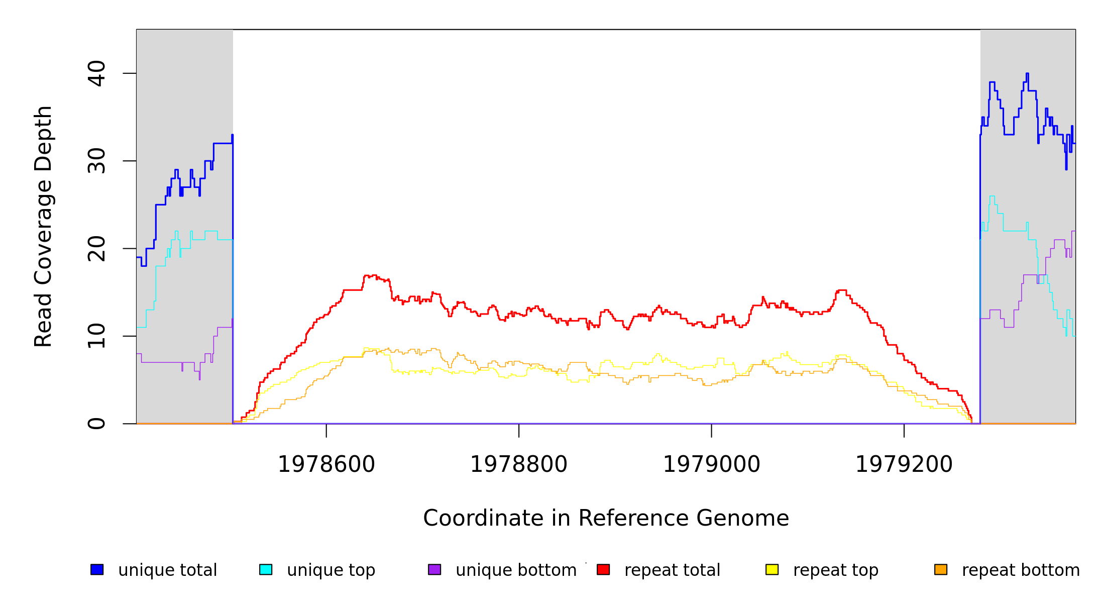 | seq id | start | end | size | ←reads | reads→ | gene | description | |||