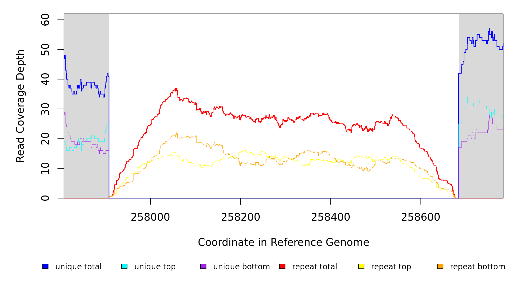 | seq id | start | end | size | ←reads | reads→ | gene | description | |||