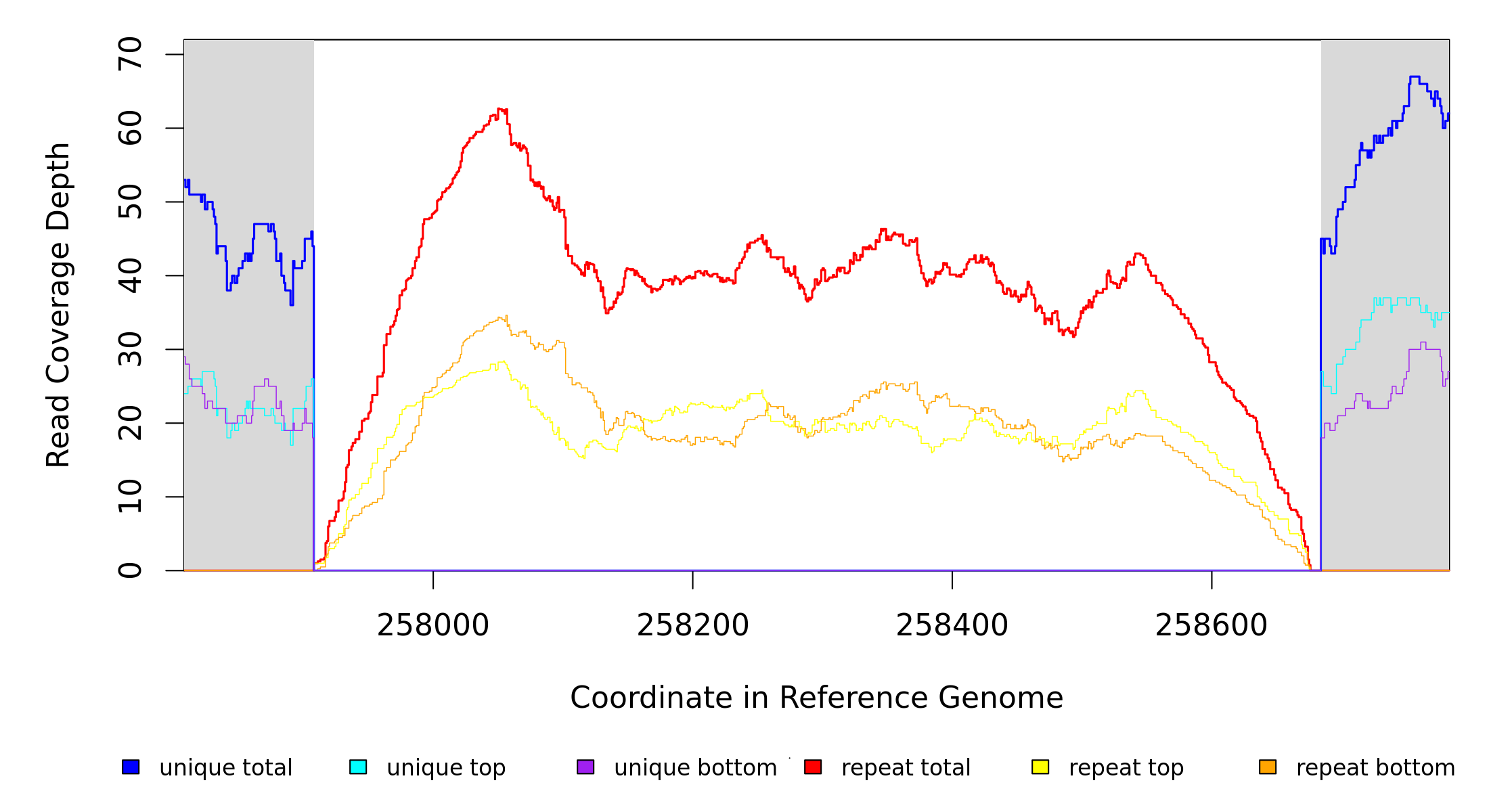 | seq id | start | end | size | ←reads | reads→ | gene | description | |||
